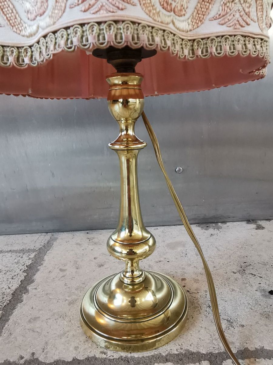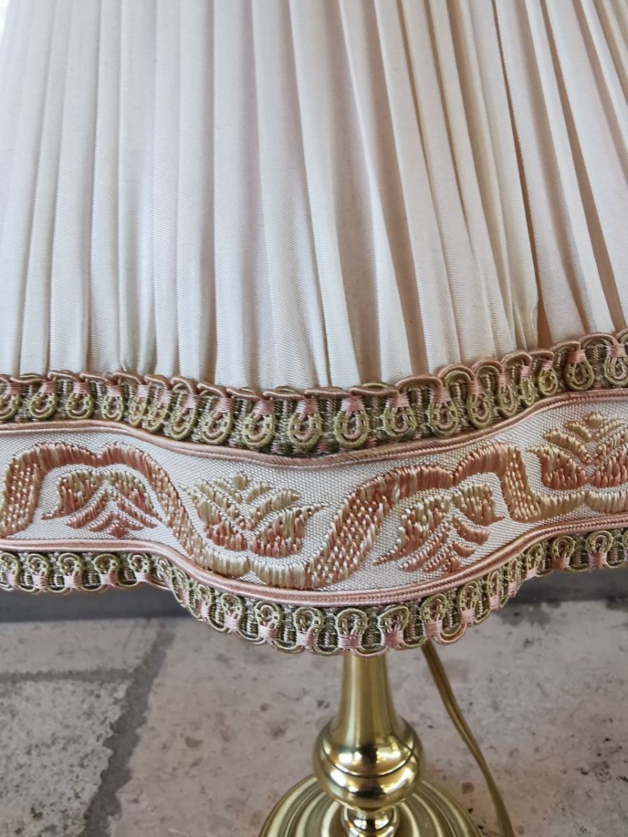 Lampe en laiton dorée avec son abat-jour à double galons brodé.