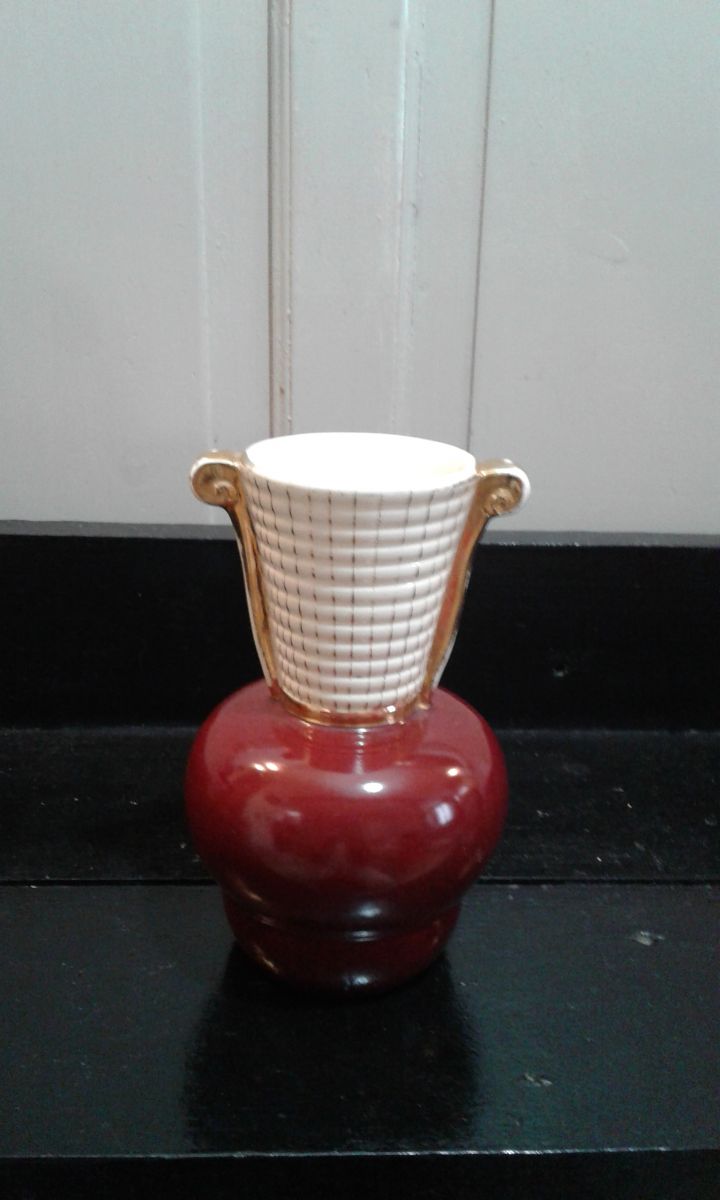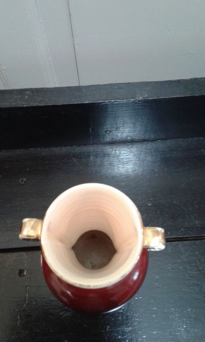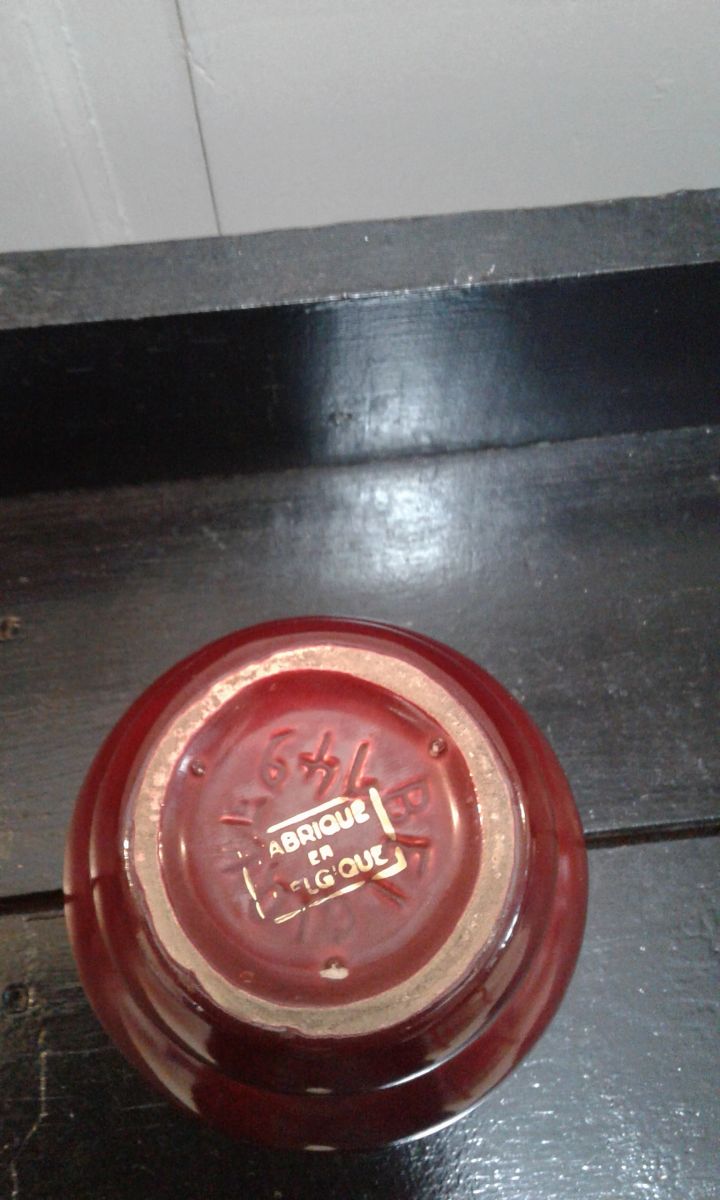 Vase en ceramique estampillé et numéroté provenance Belgique, il est en bonne état à noté petite usure de la dorure sur les anses' Il a un diamètre de 26 et 38 sur le bas.