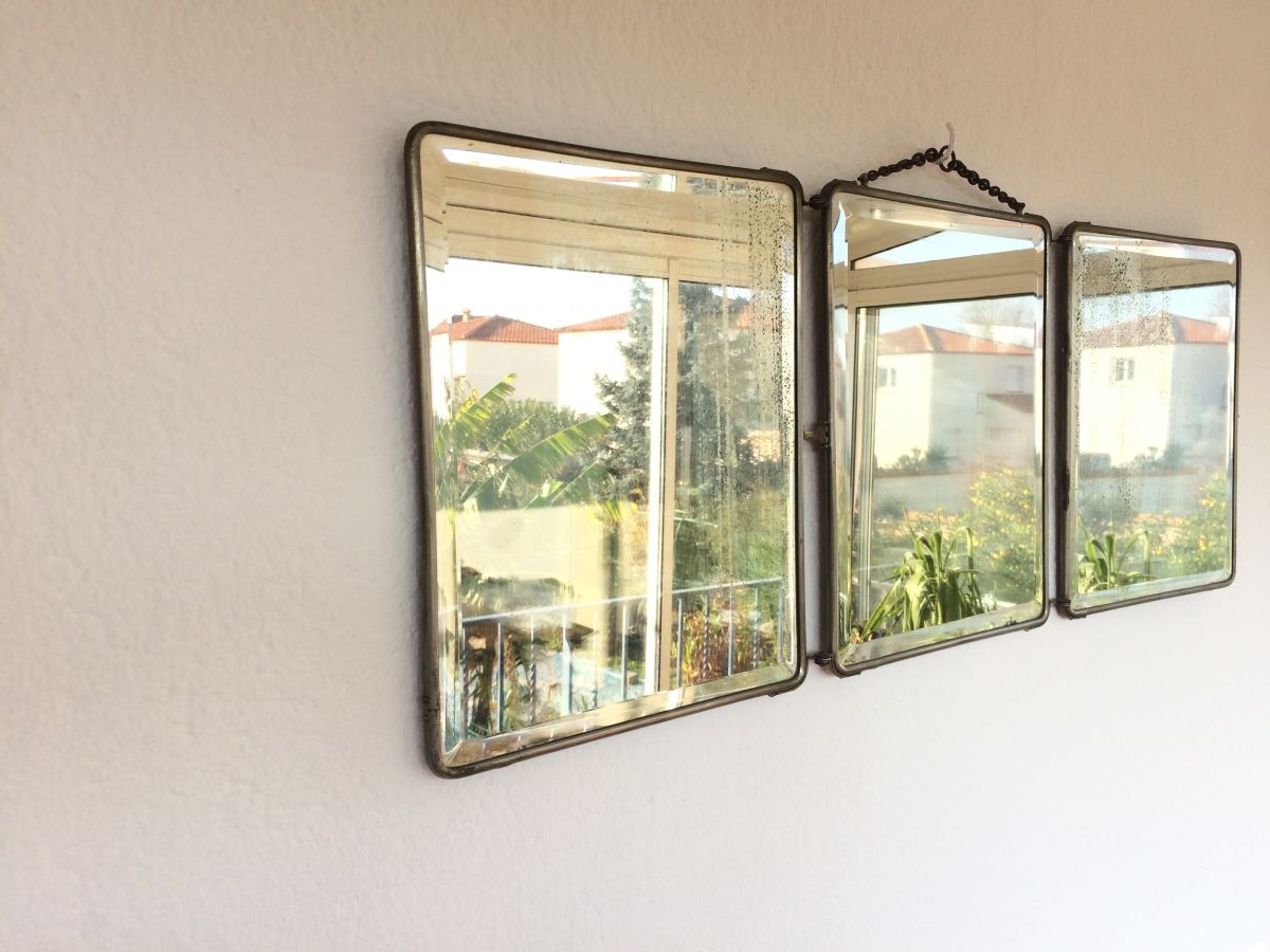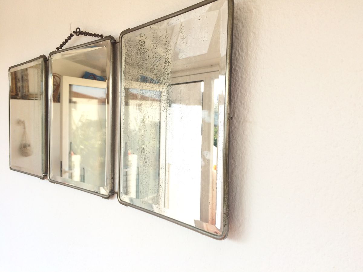 Miroir de barbier triptyque vintage, en assez bon état de conservation.