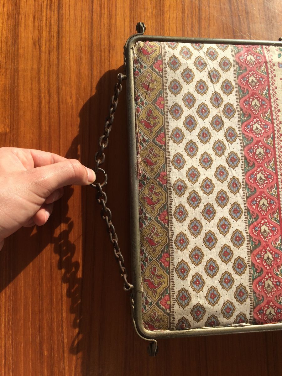 - Très beau tissu d'époque, il rebique légèrement sur le haut de l'une des faces.