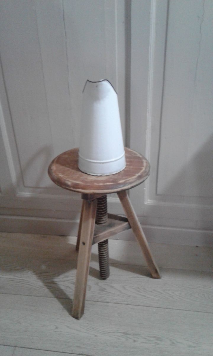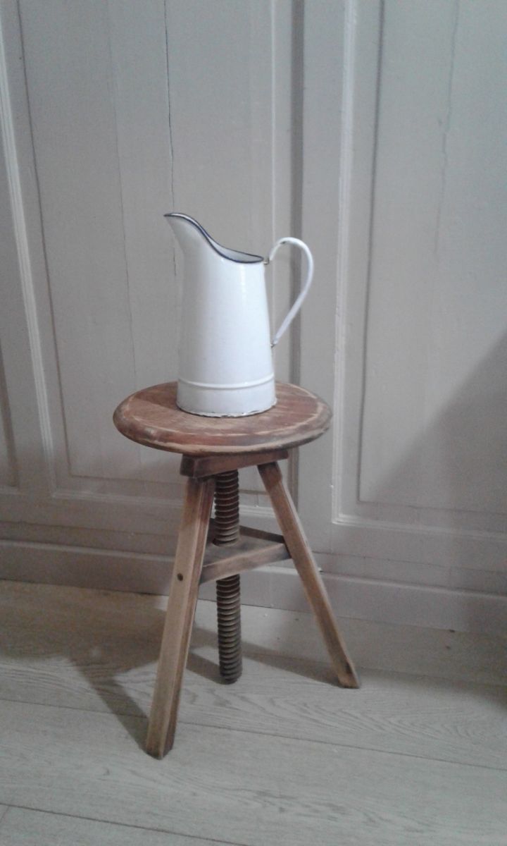 Broc émaillé Blanc et bleu ,il est authentique il a quelques trace du temps idéal pour une déco de cuisine.