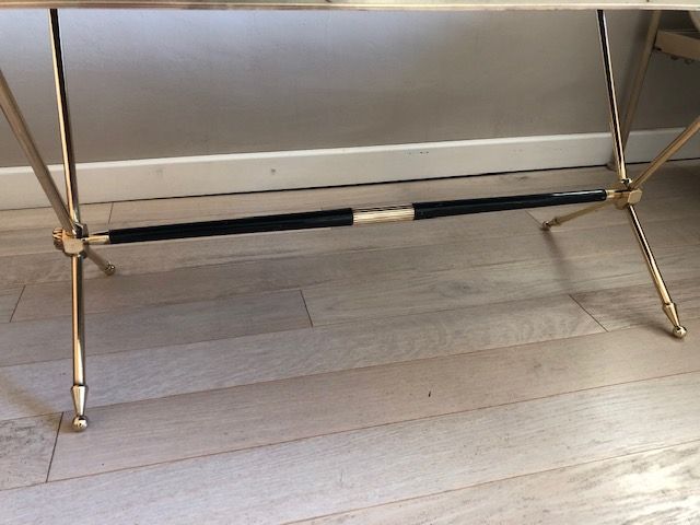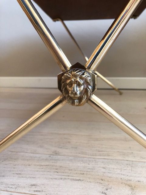 Table basse, laiton doré et têtes de lion, maison Ramsay