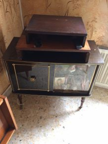 Table de chevet ou mini enfilade,art déco en placage.deux portes, un tiroir. détails en laiton.dessus peint en noir mat. Peut servir de chevet, meuble d appoint, bout de canapé. Propre et en bon état