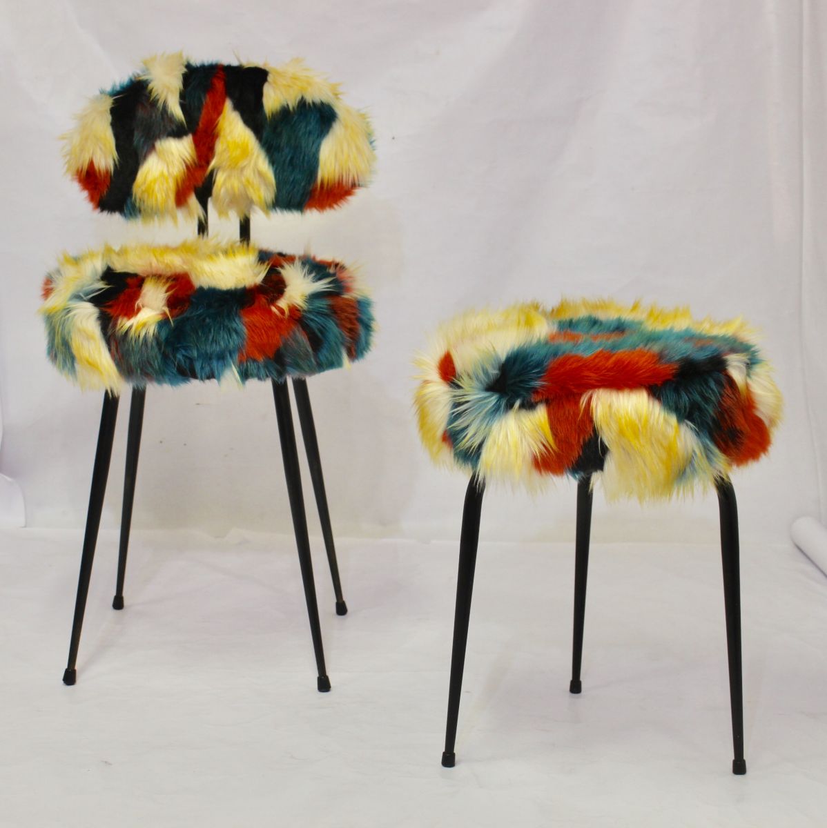 Perchées sur des pieds fuseaux en laiton, moelleuses et colorées, les pelfran sont devenus une star de la déco, tandis que les designers contemporains s'entichent de cette matière douillette et joyeuse.