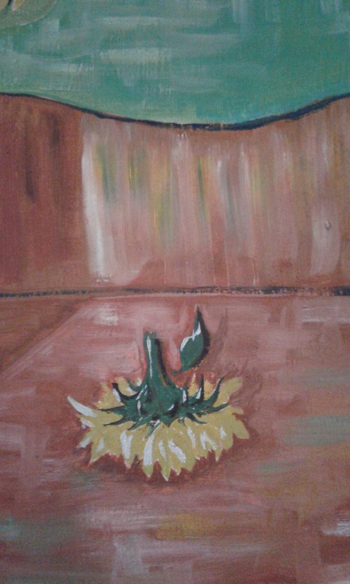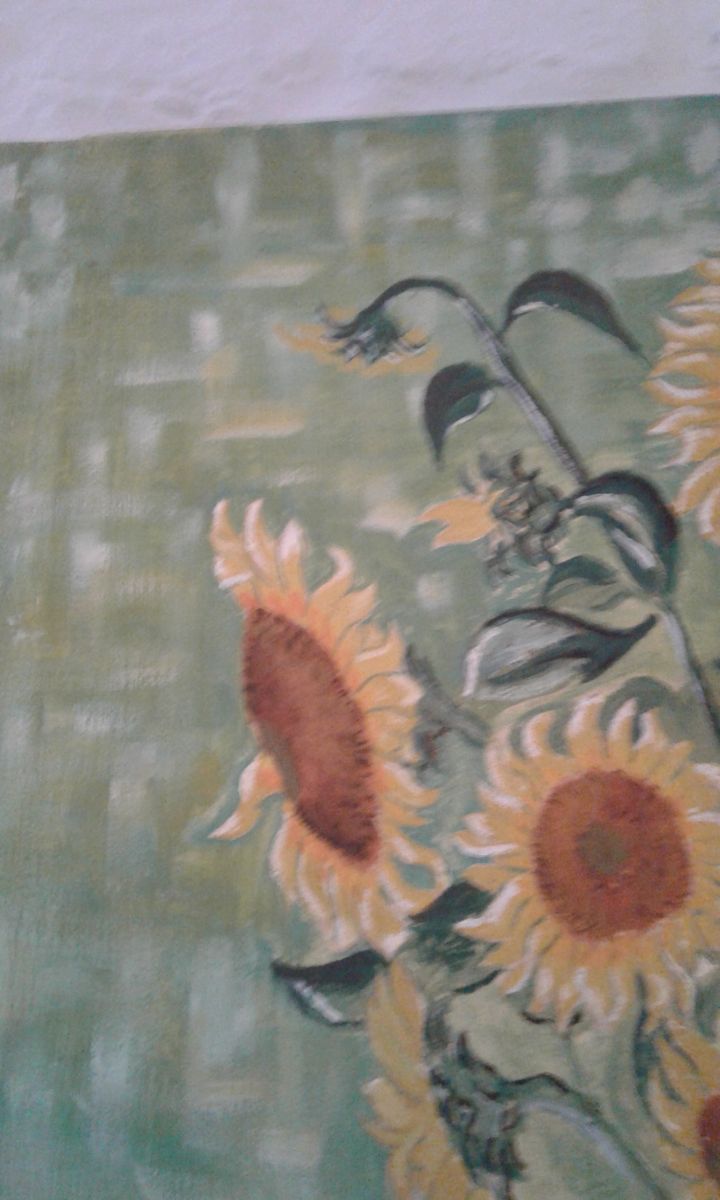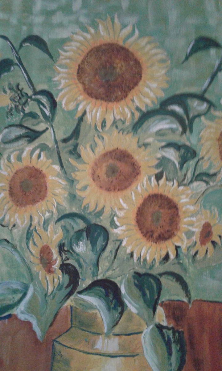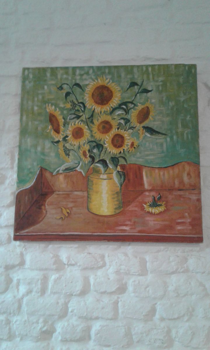 Peinture sur toile ancienne inspiré des tournesols de Vincent Van Goth , elle bien exécuté artiste inconnu n est pas signé ' elle est en bonne état elle a subi une restauration voir photos .