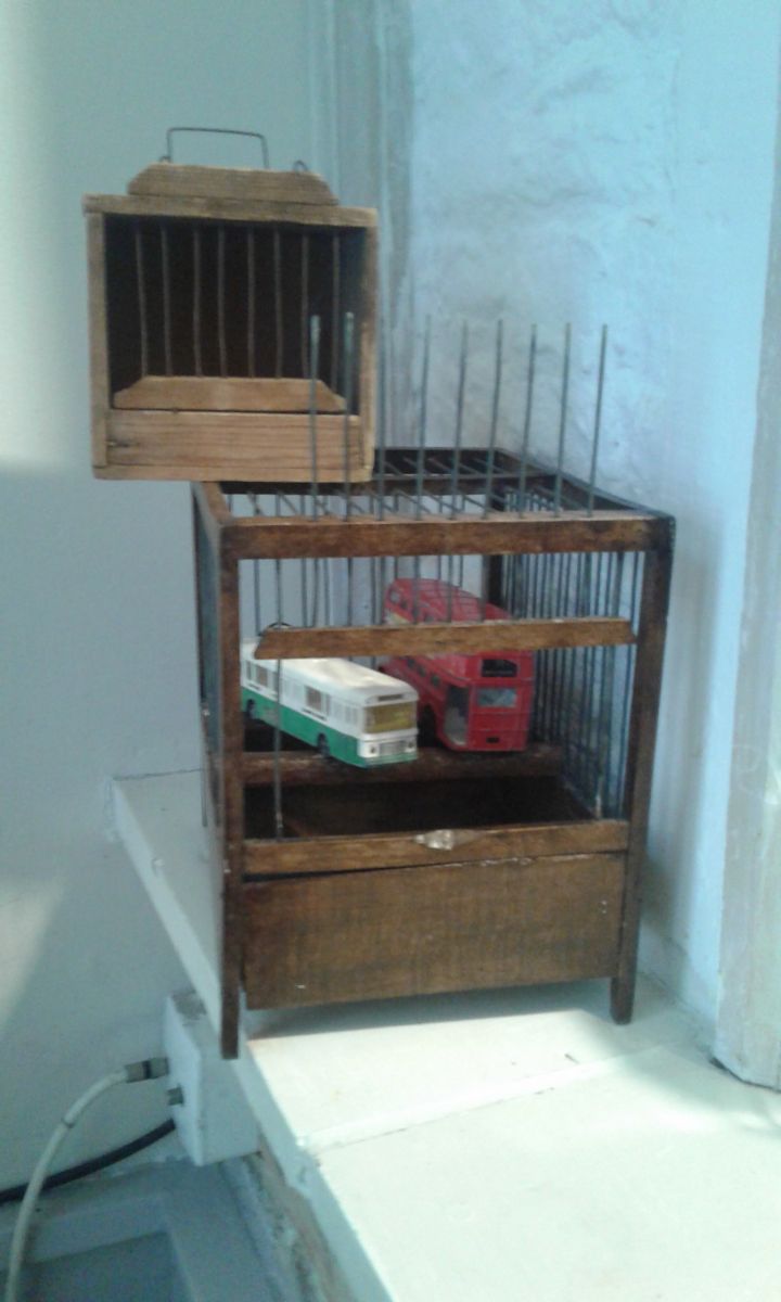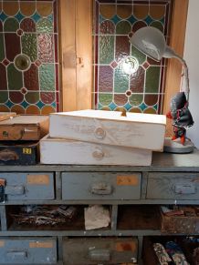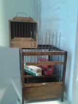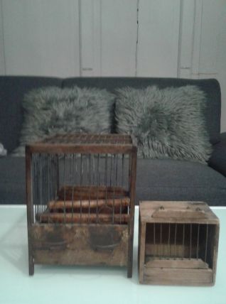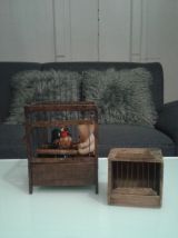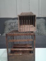 Ensemble de 2 cages à oiseaux en bois ancienne idéal pour transformé en cabinet de curiosité la petite ne s'ouvre pas ,livraisonavec mangeoire et plaque de fond en zing.