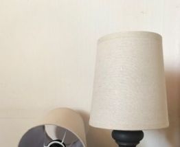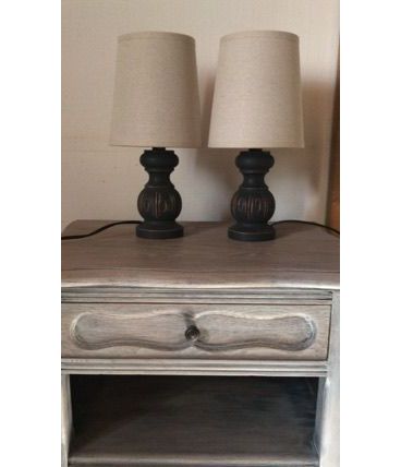 Vend 1 paire de lampe de chevet vintage , relookée, patinée gris effet patiné , abat-jour aspect lin naturel , neuf