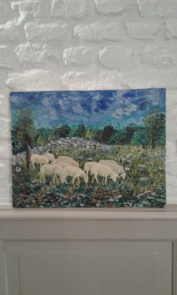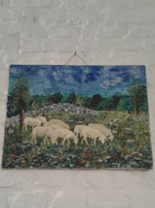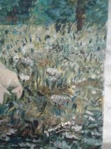Jolie peinture champêtre 'cette toile est en super état elle est signé.