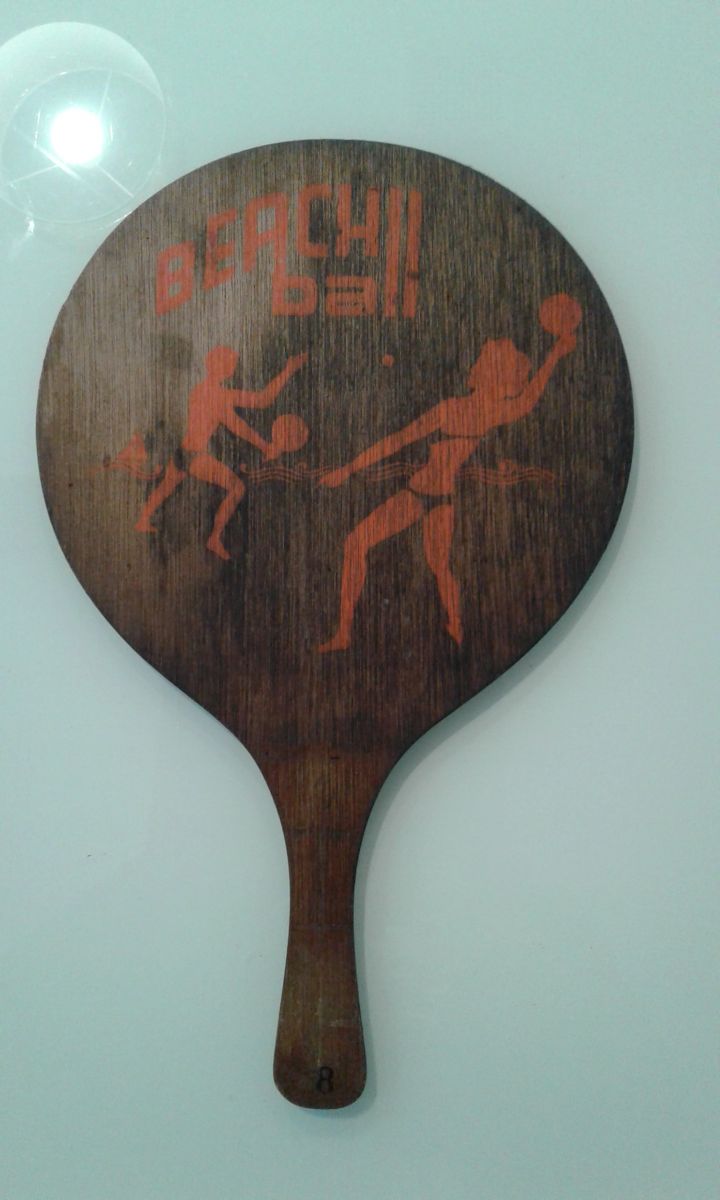 Raquette Beach Ball en bois avec jolie patine année 60.