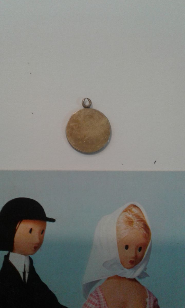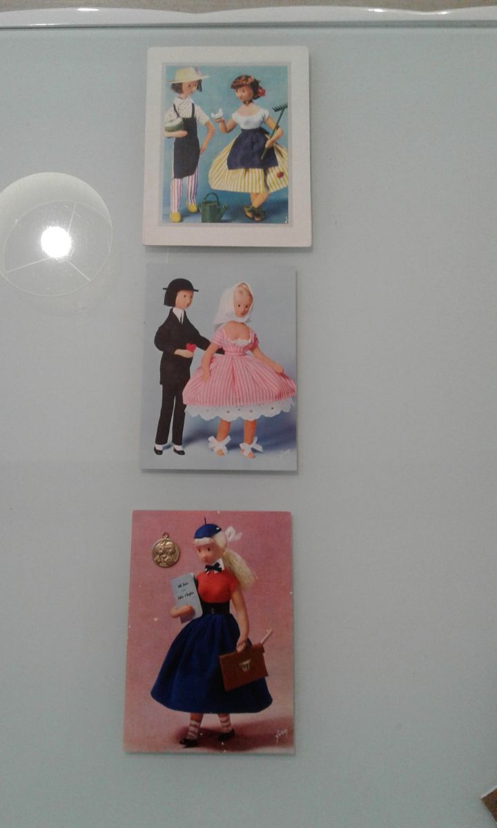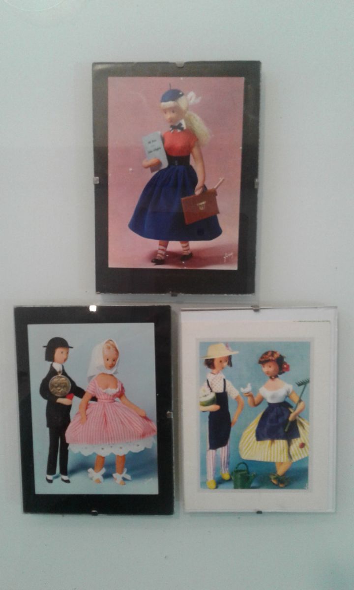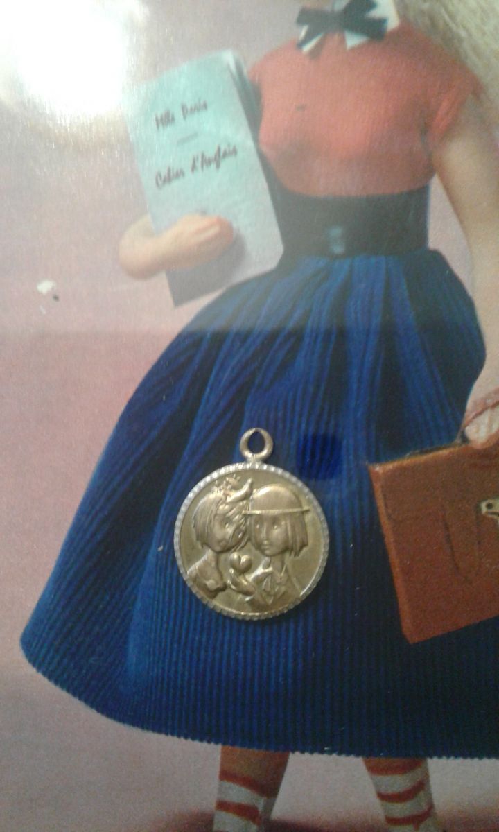 Ensemble de trois cartes sous verre plus un médaillon en plaqué or quelques traces d usage sur le médaillon voir photos 2 cartes sont écrite au dos.