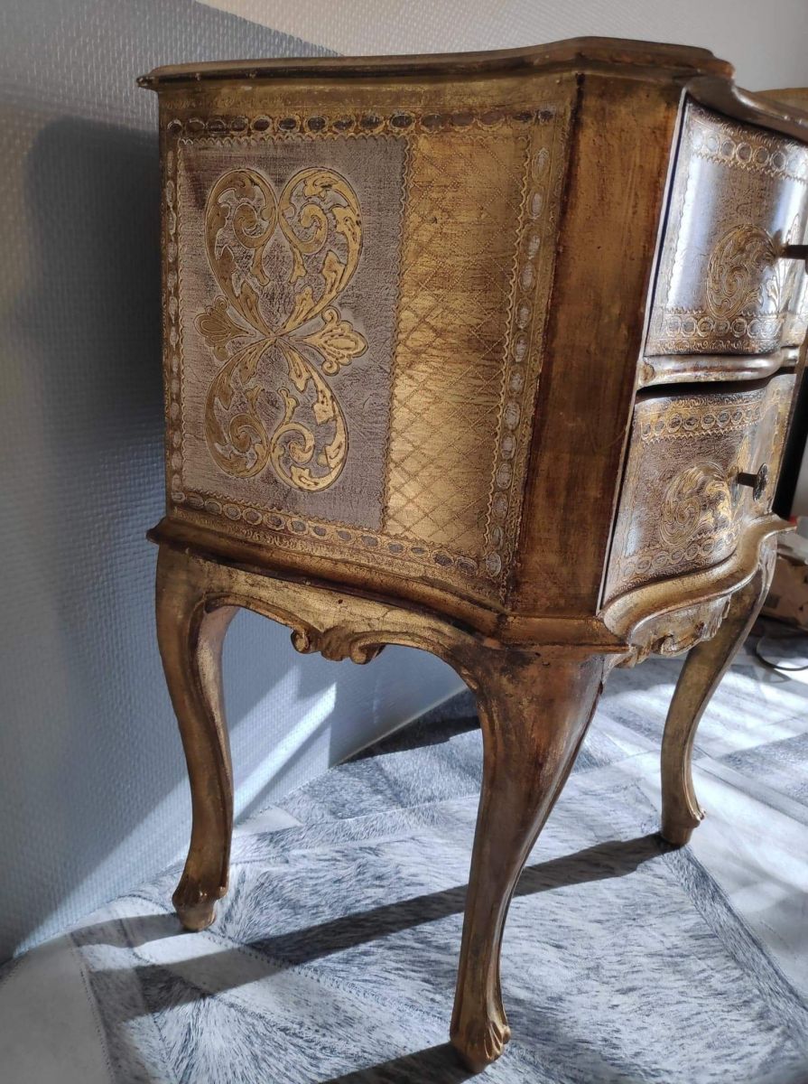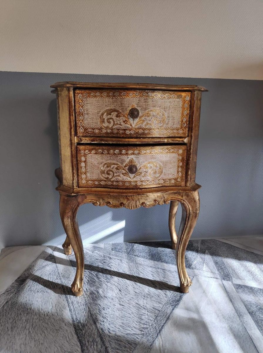 chevet style vénitien du XIXe siècle doré à la feuille d'or, 2 tiroirs