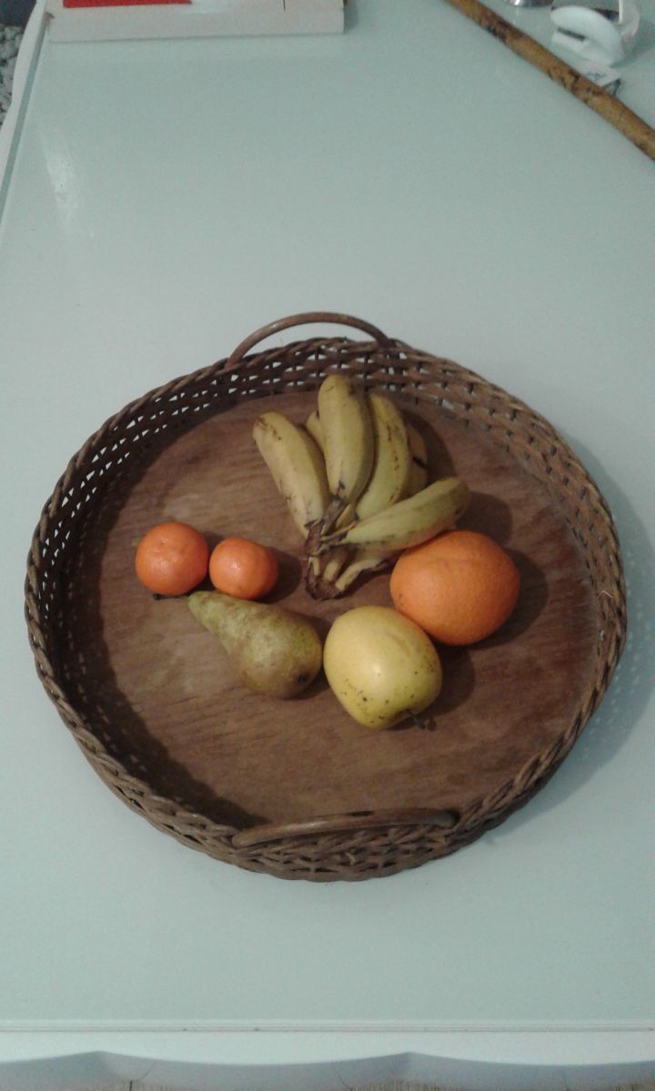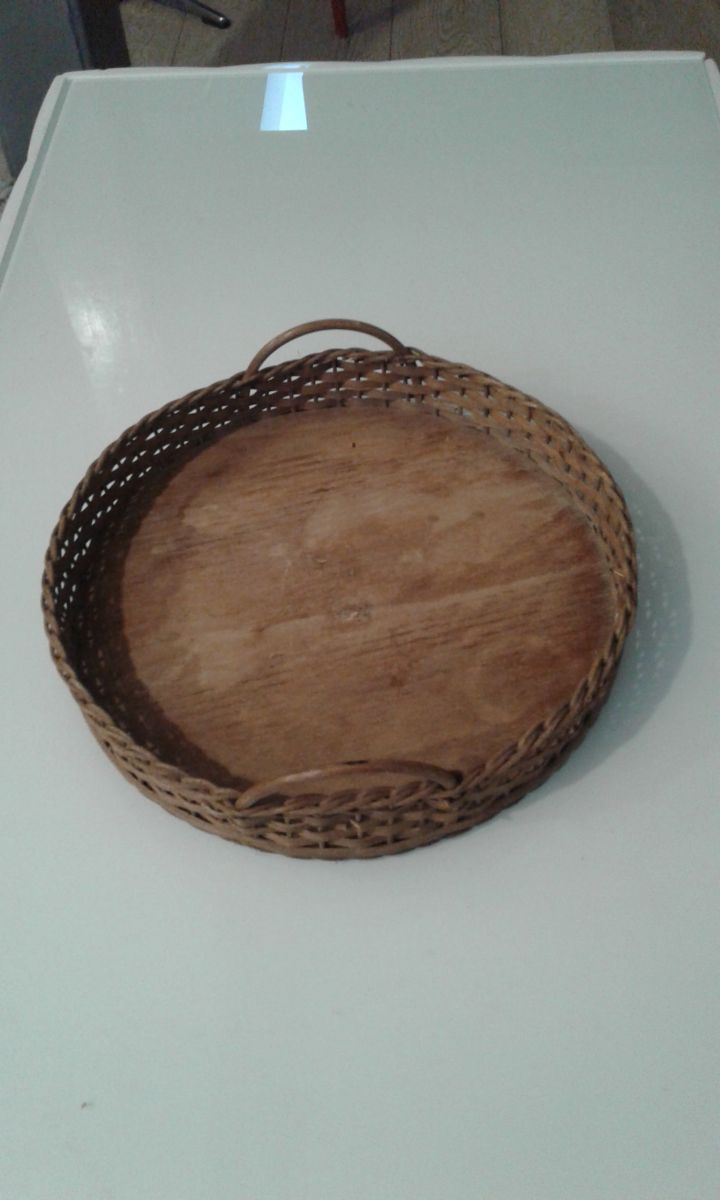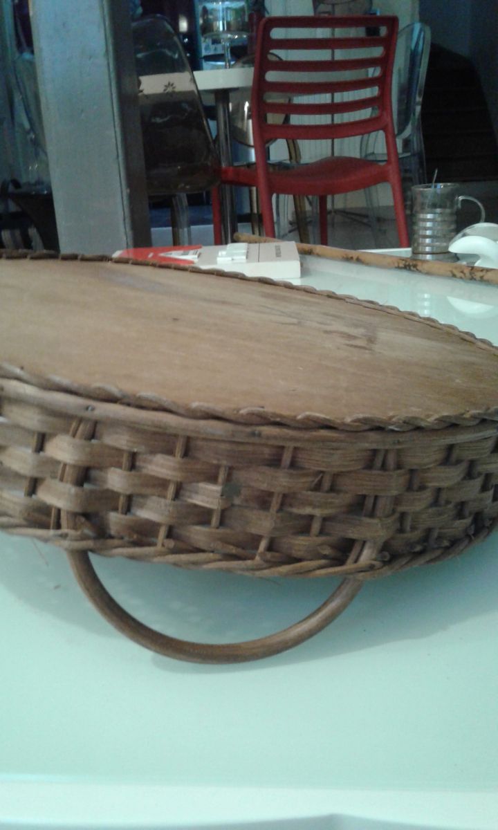 Plateau de service en rotin ancien 'peut servir de panier à fruits à noté quelque traces d'usage voir photos.