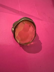 Bague plaqué or avec cabochon carré saphir de synthèse