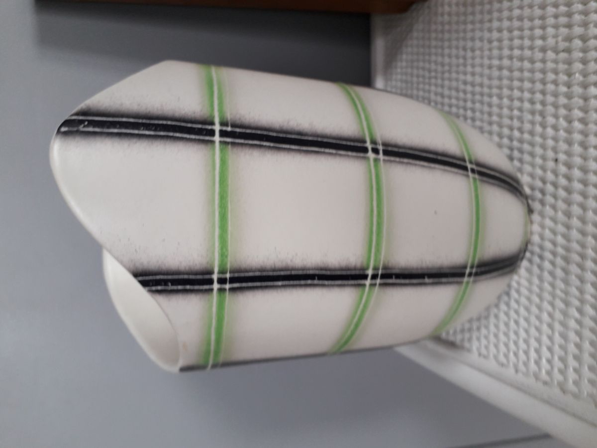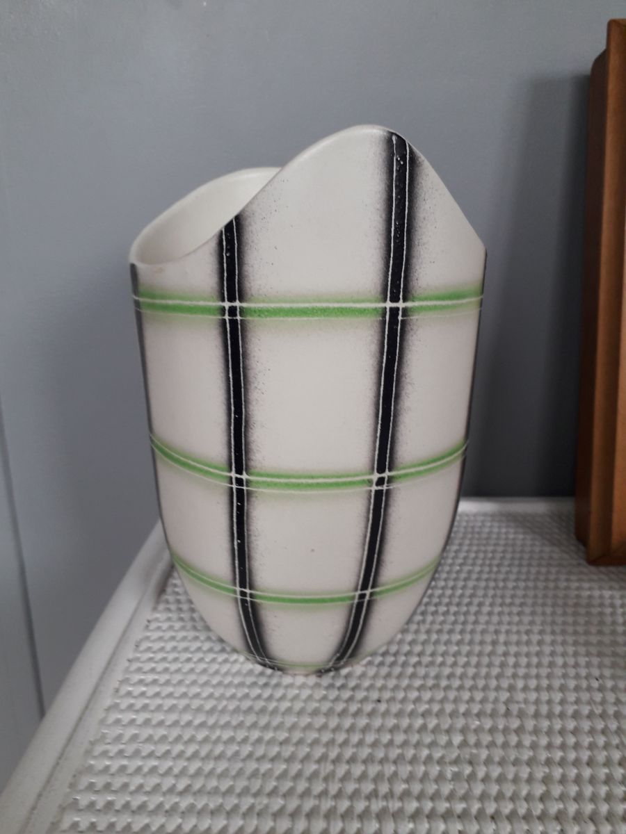 Vase vintage en céramique Germany de forme évasé avec un motif écossais.