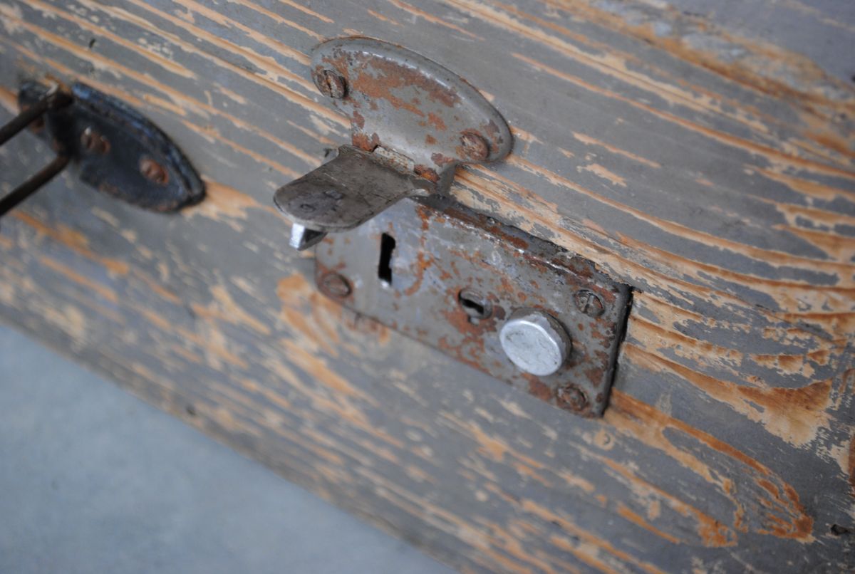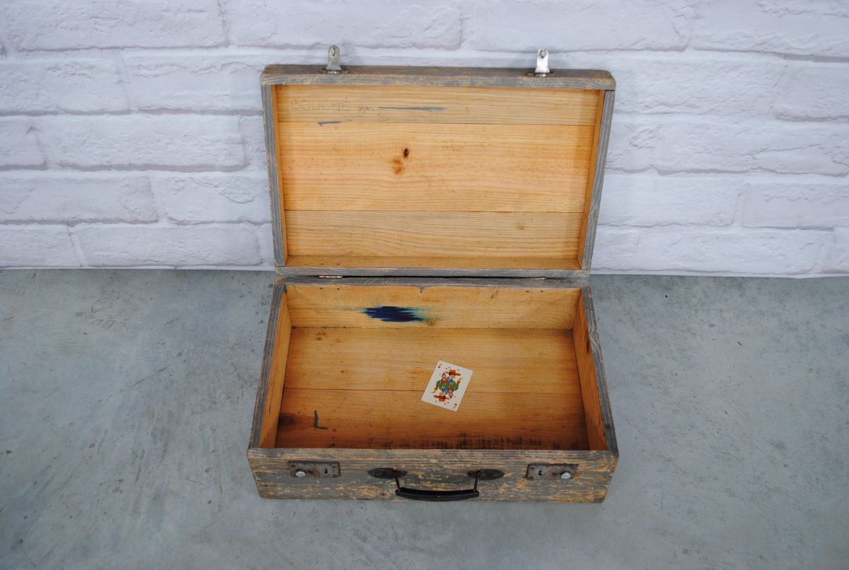 Malle en bois année 1950. Dans son jus avec une très belle patine.