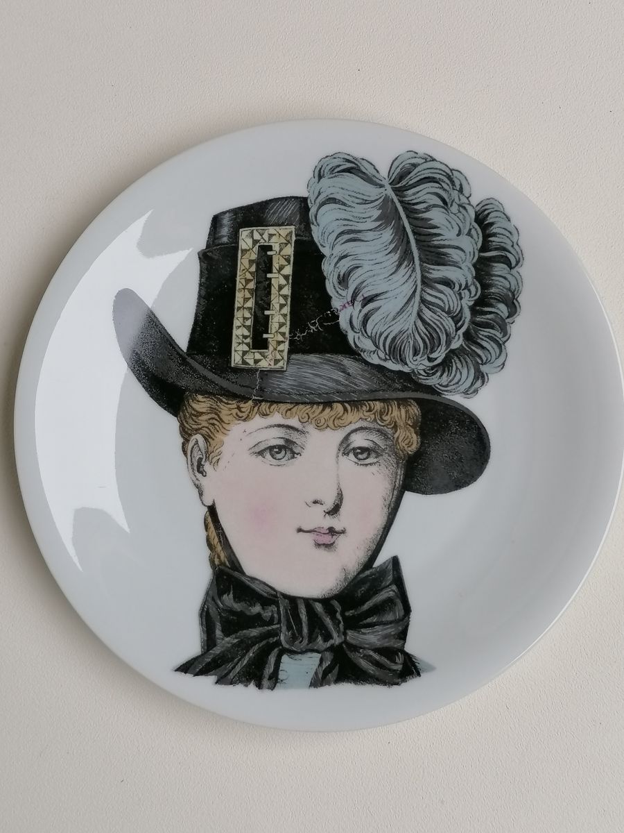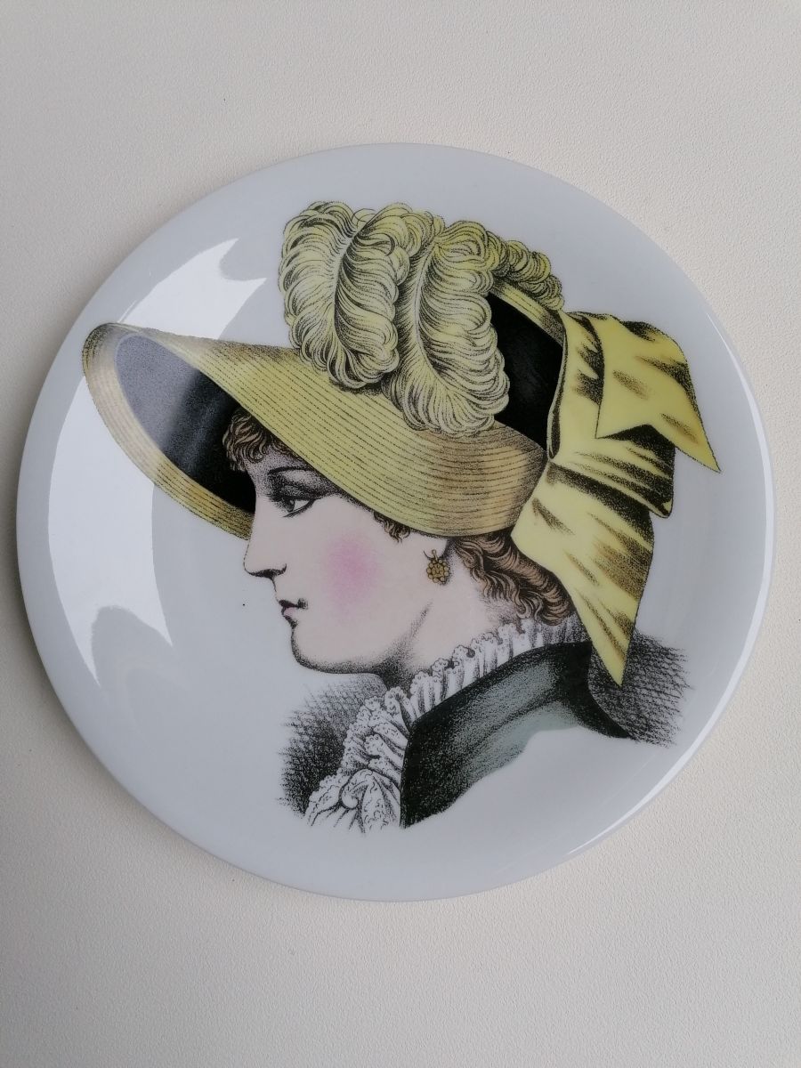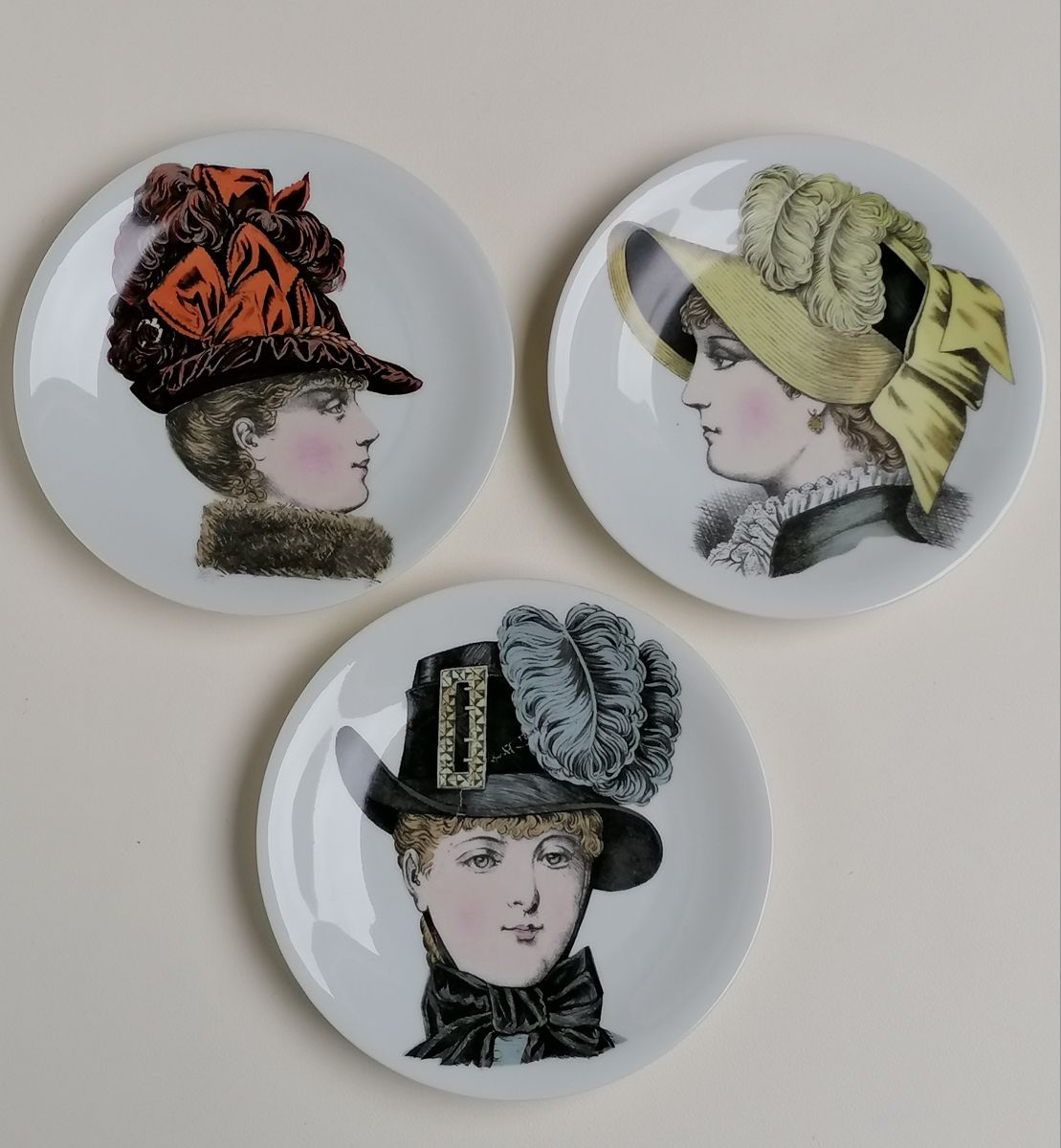 Lot de 3 assiettes sérigraphiées de motifs aux visages de femmes de la Belle Epoque.