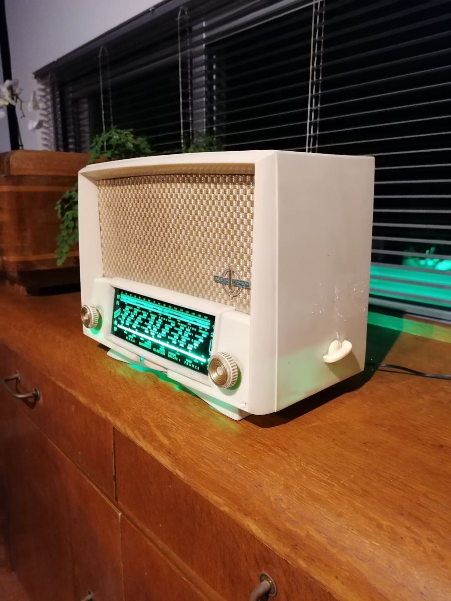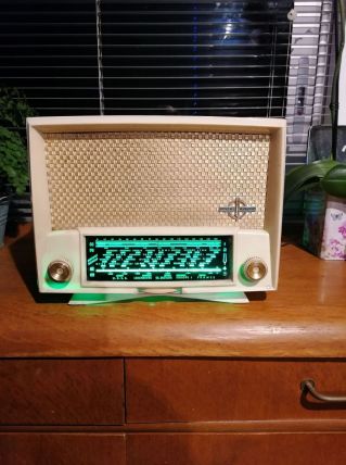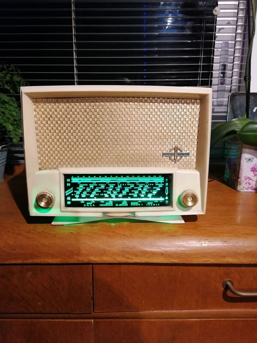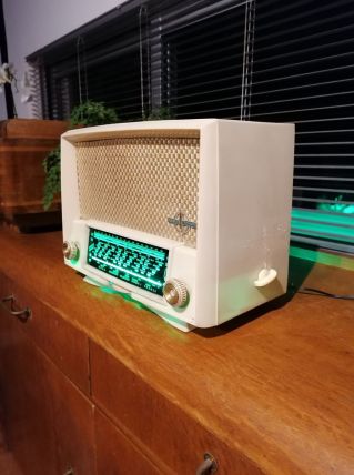 Poste de radio tsf de marque THOMSON DUCRETET de 1956 remit au goût du jour. Radio Bluetooth intégré via smartphone avec prise USB et retro éclairage led