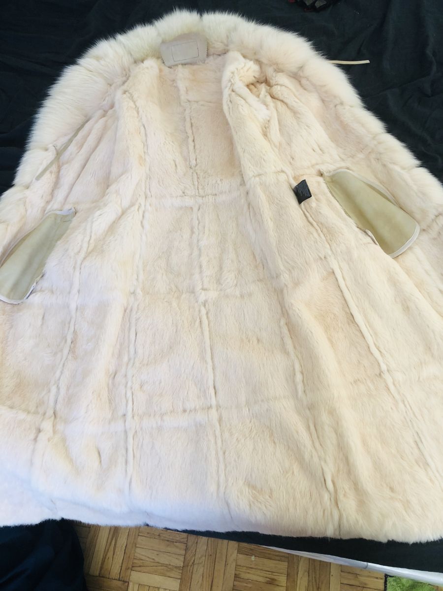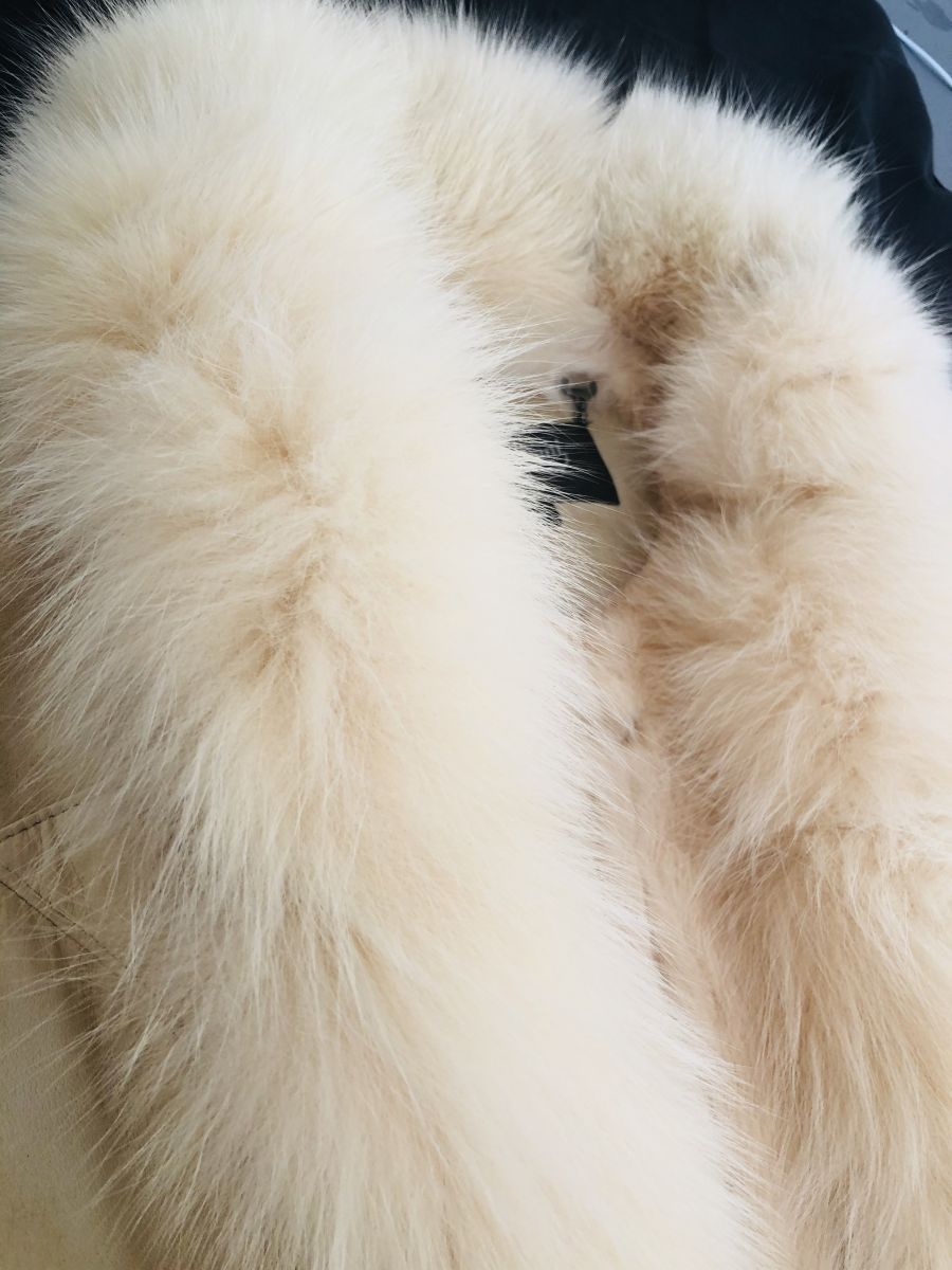 Manteau long cuir et fourrure véritable jamais portée.