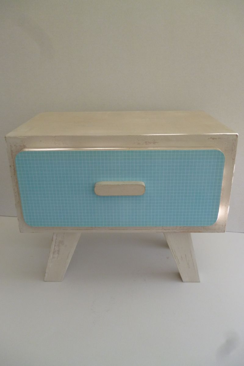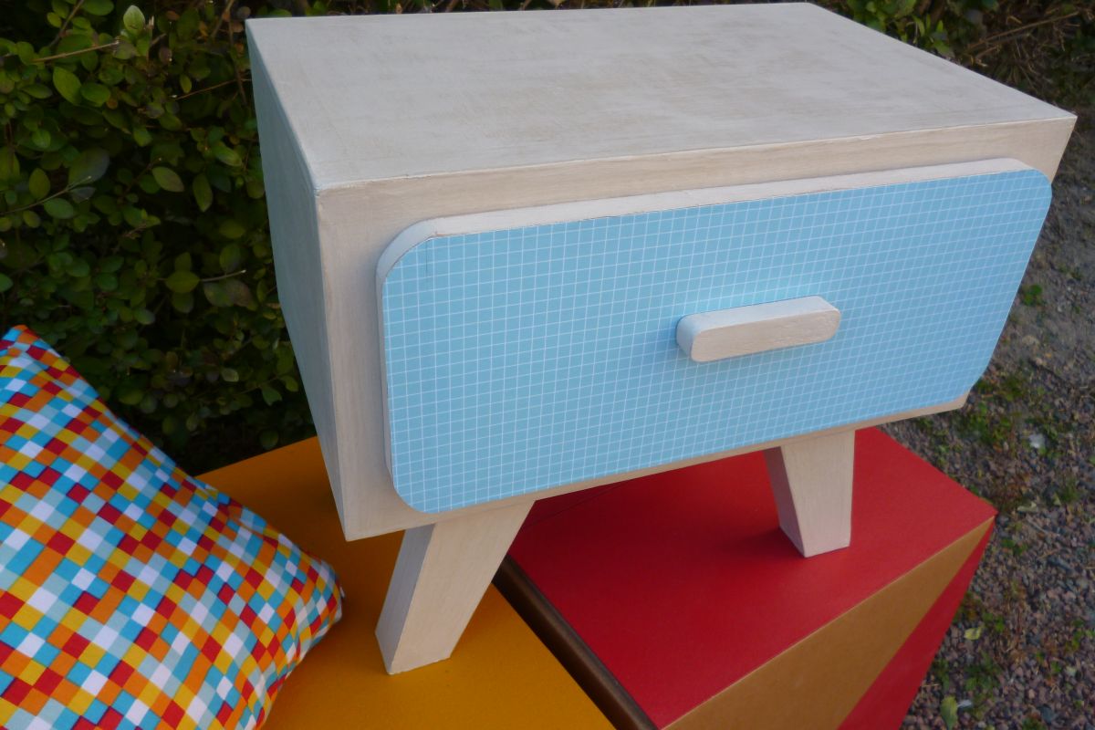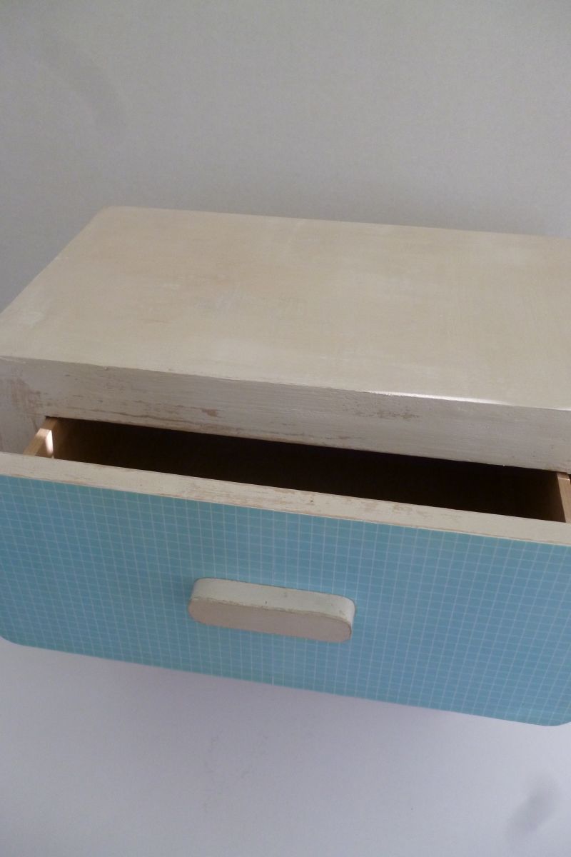 Le tiroir est spacieux, sa façade est revêtue d'un papier décoratif que j'ai verni.