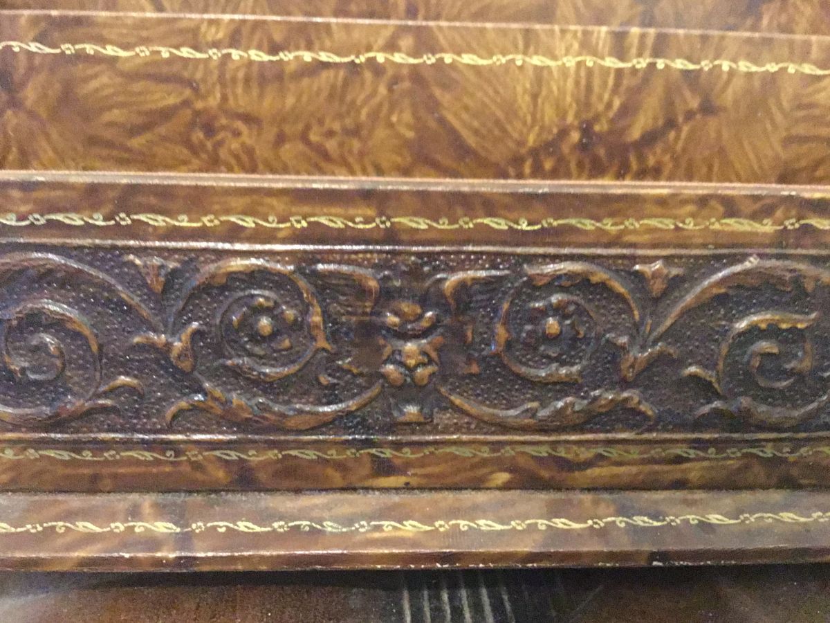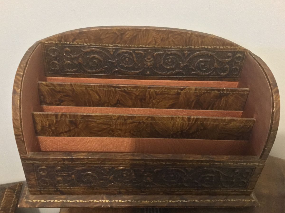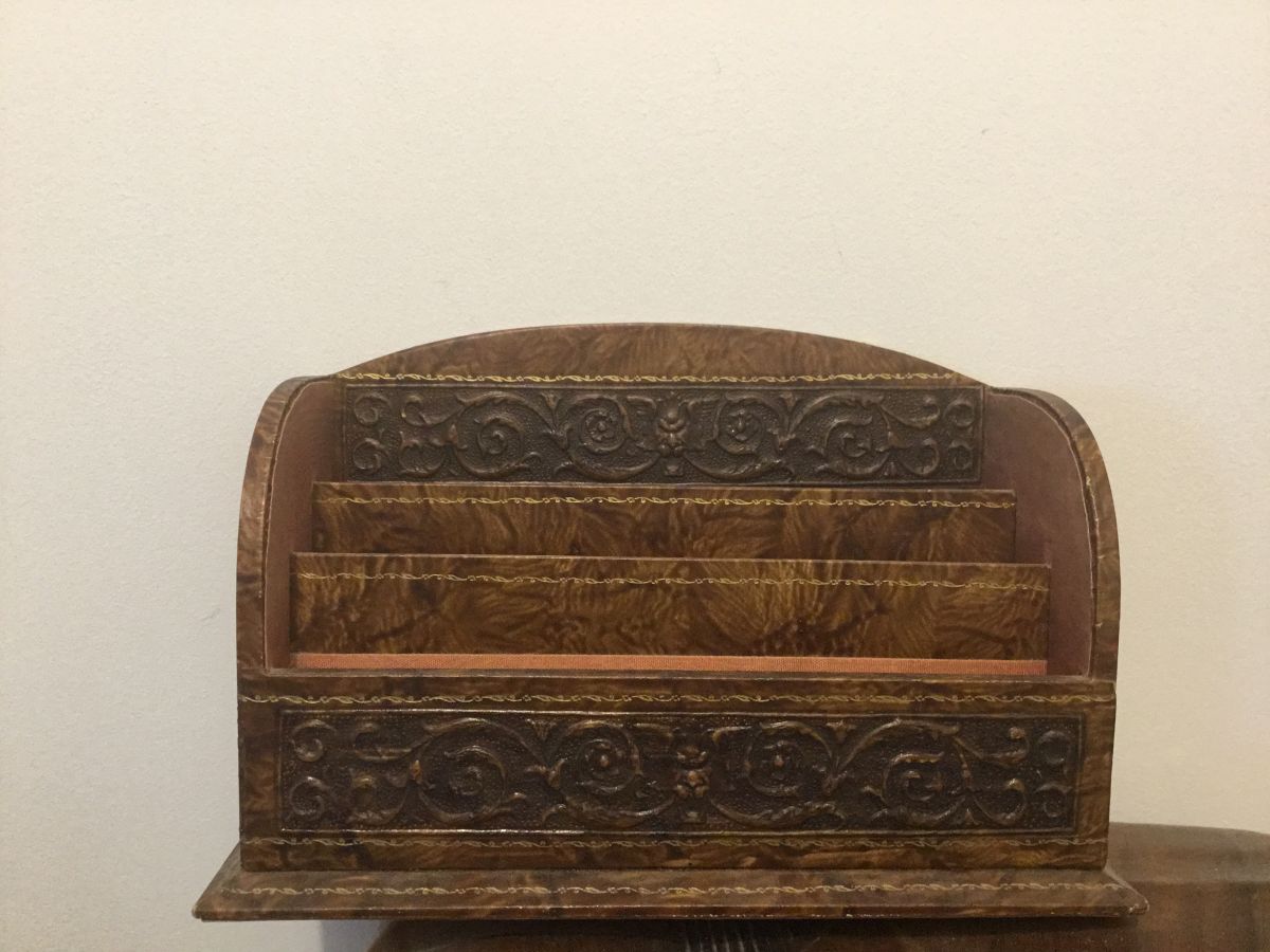 Porte- lettre en bois avec moulure en tête de Lyon avec quelques traces d’usure sur les côtés.très agréable à voir.Dans son jus