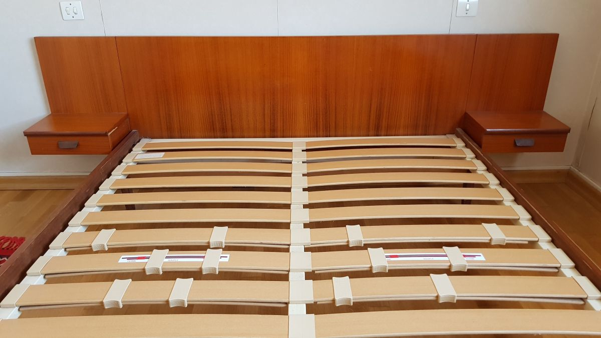un lit style scandinave fin des années 60 en très bon état avec ces 2 chevets attenant.