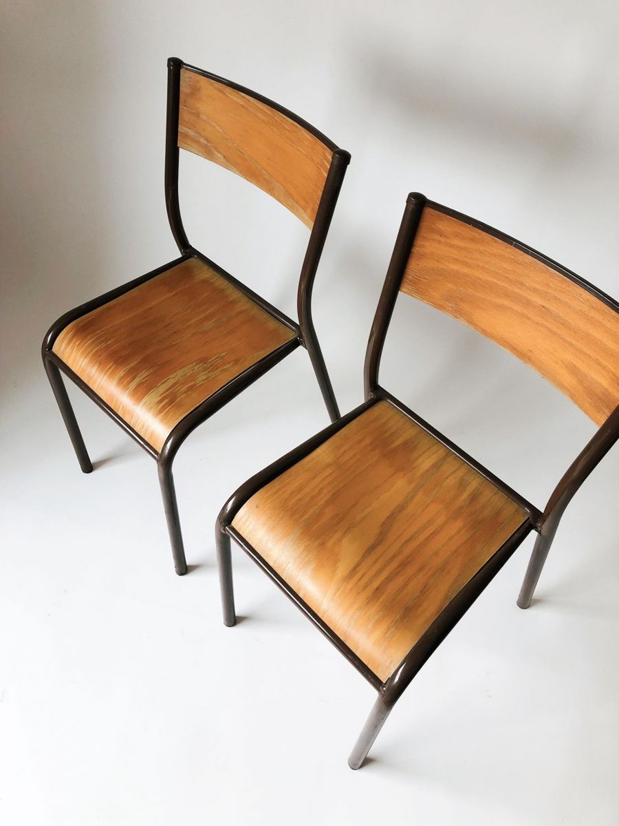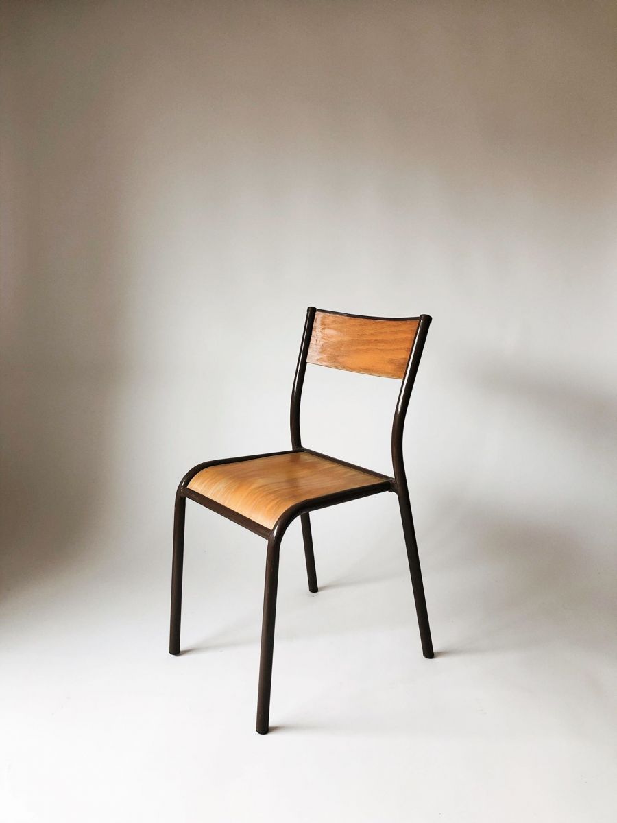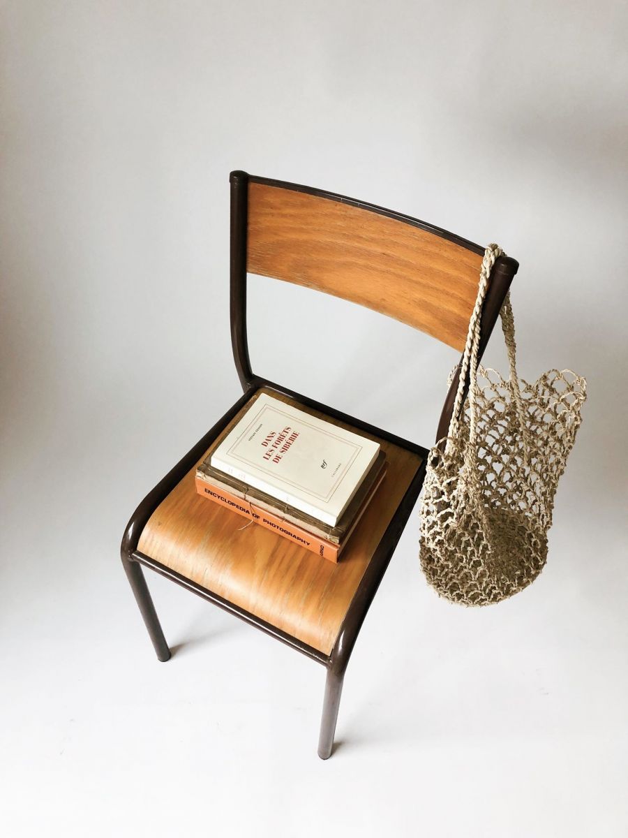 Chaise écolier en bois couleur miel et métal couleur marron. Bon état général pour des chaises de cet âge. Ces marques du temps sont tout ce qu'on aime sur ce genre d'objet, elles racontent une histoire. Le charme de l'ancien! 8 chaises sont disponibles, elles sont toutes uniques dans le sens ou elles présentent des petites variations et particularités au niveau de la patine du bois, et du métal. Idéales pour donner un côté vintage dans votre maison! Dimensions: hauteur 81cm, largeur 38cm, longueur 36cm, hauteur d'assise 46cm