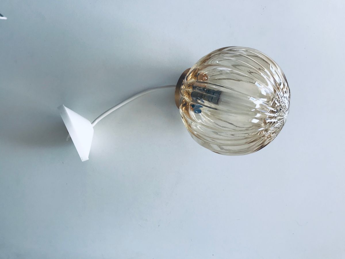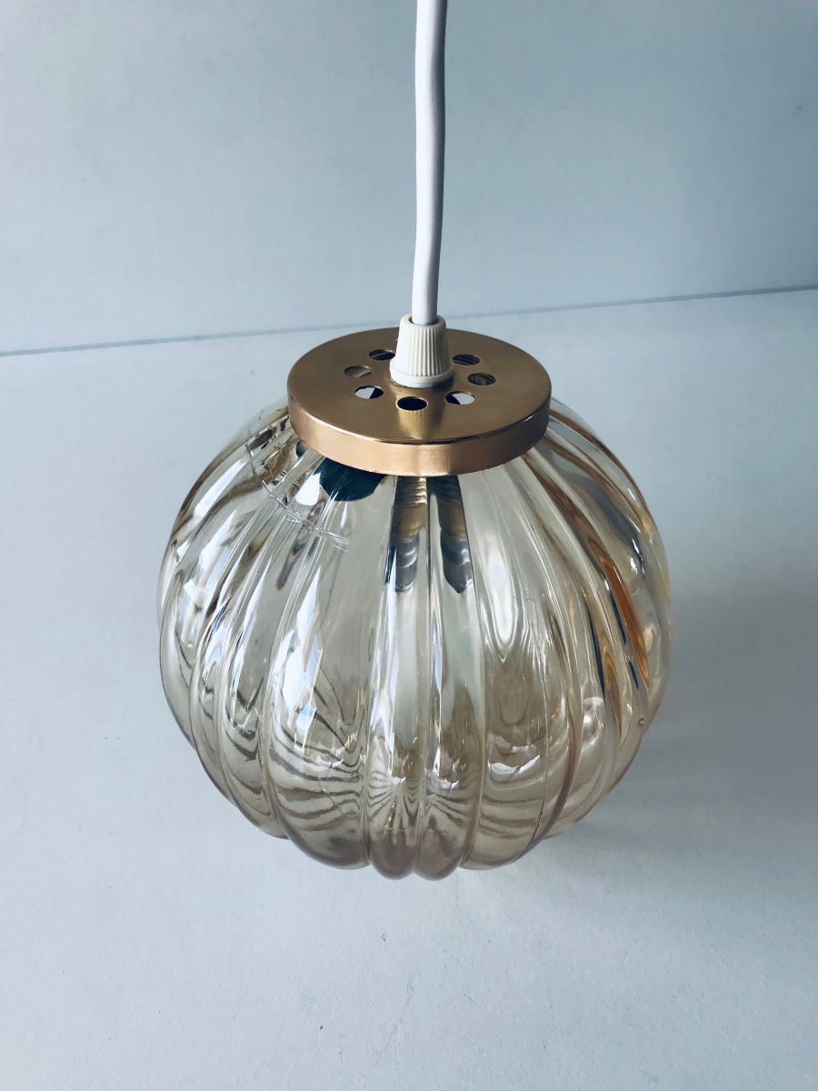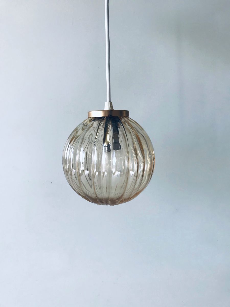Jolie suspension boule vintage en verre couleur miel. Cette belle et adorable suspension trouvera sa place dans de nombreuses pièces de votre intérieur (salle de bain, cuisine...). Elle apportera une touche vintage et élégante.