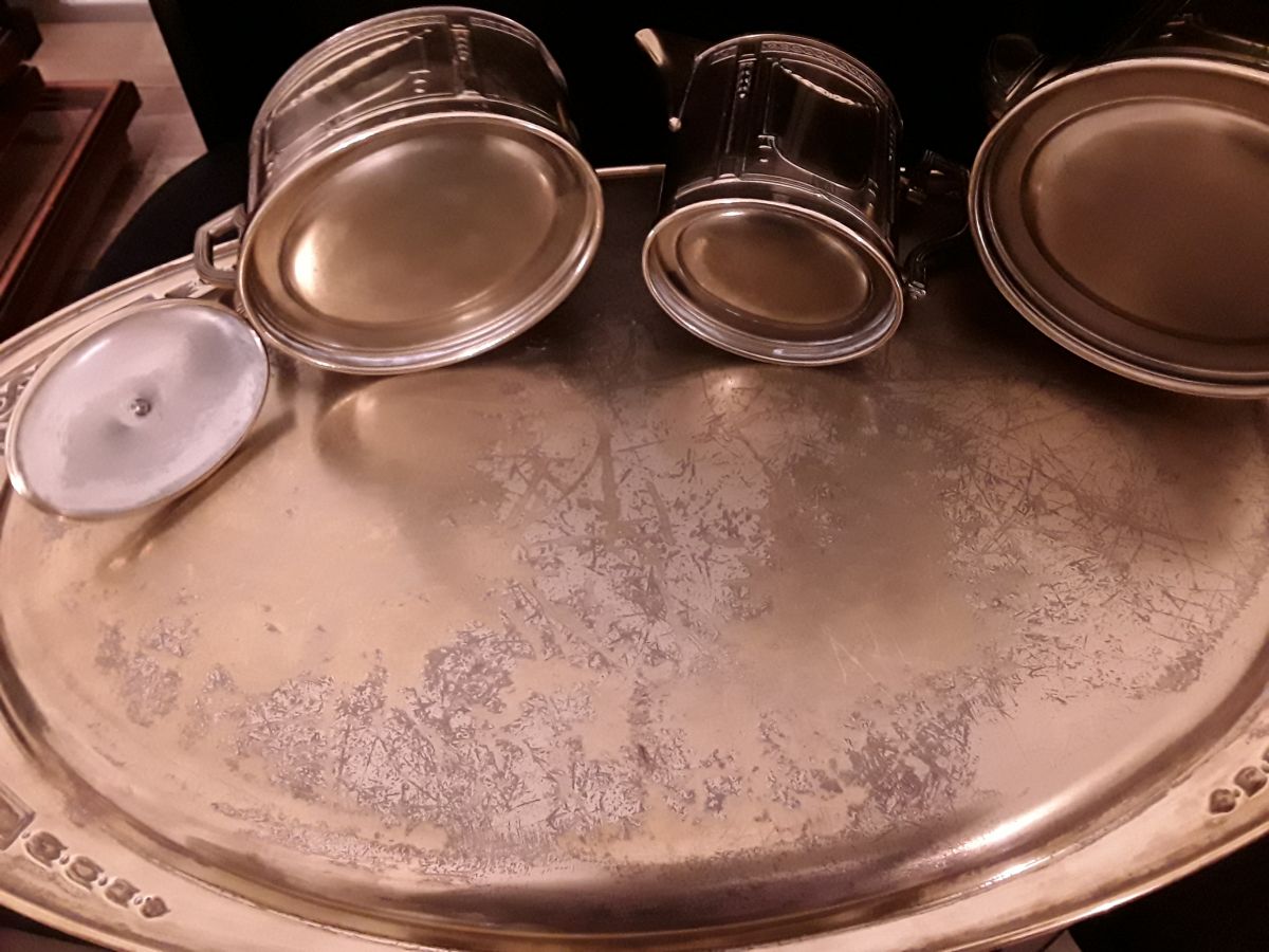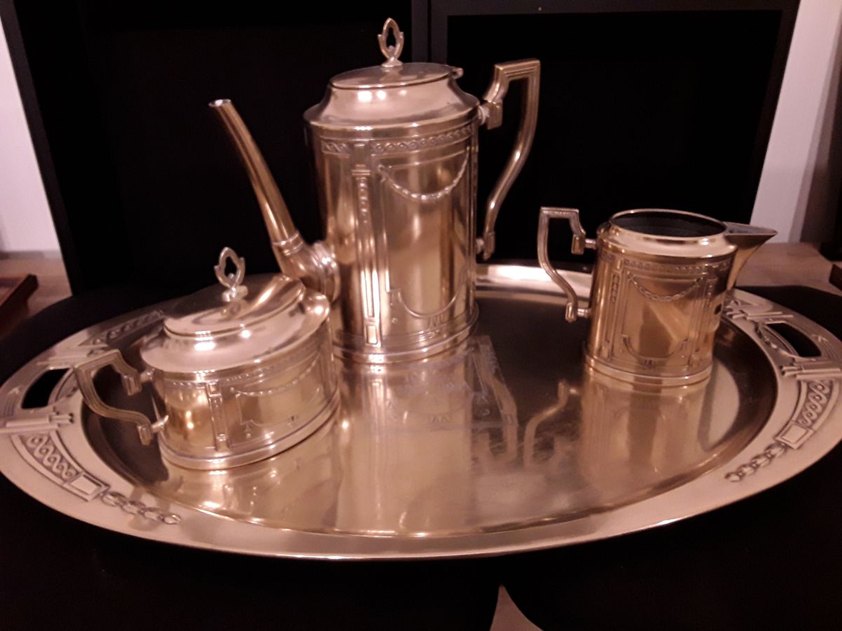 Service à café ancien très belle déco pour amateur objets anciens qui ont une histoire! Bon état Seule une anse est dessoudėe mais n enlève rien à l esthėtique Simple à réparer mais je ne m y suis pas lancé. Le prix tient compte de cela .