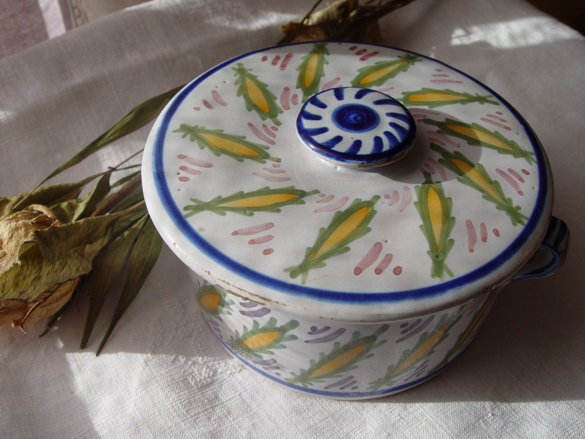 Ancien beurrier baratte en faïence vernissée de Quimper signé HB et numéroté 139.