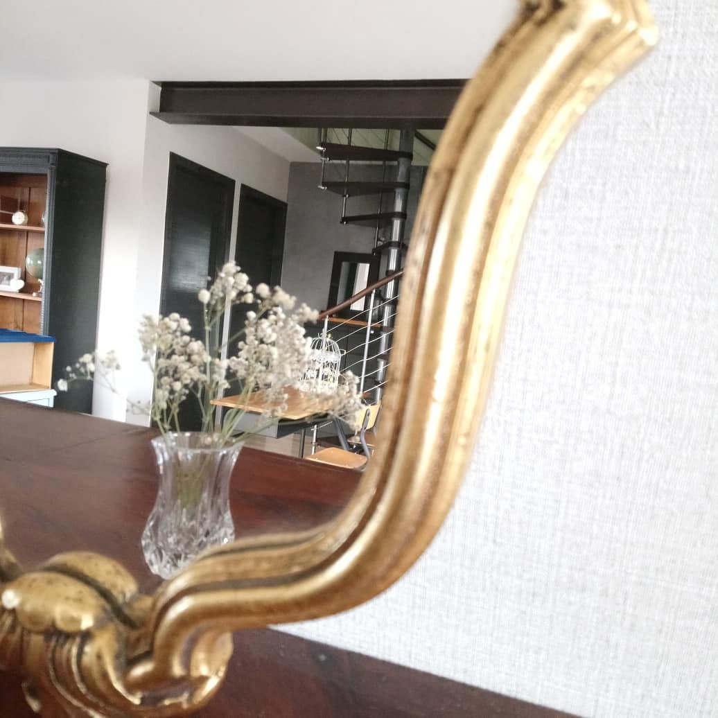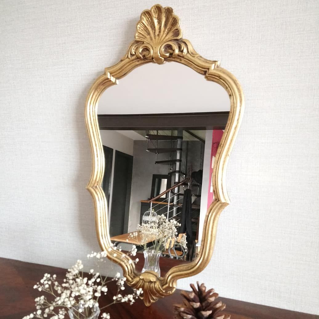 Joli miroir rocaille style Louis XV doré à la feuille d'or.