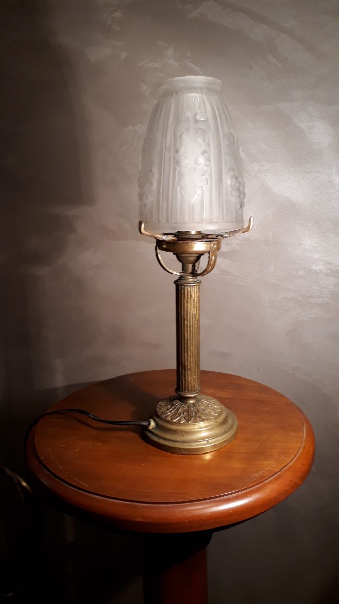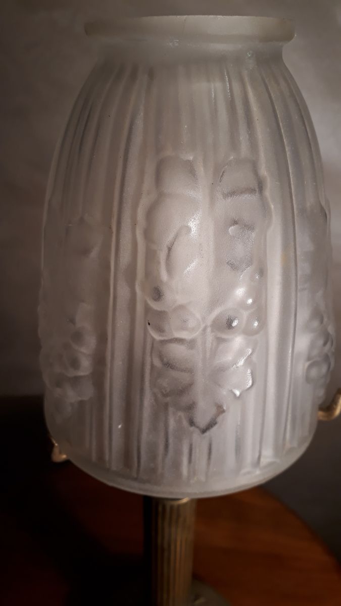 lampe laiton pied bronze verre moule et presse opaque