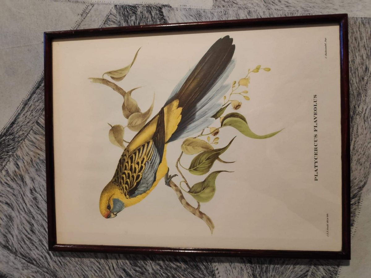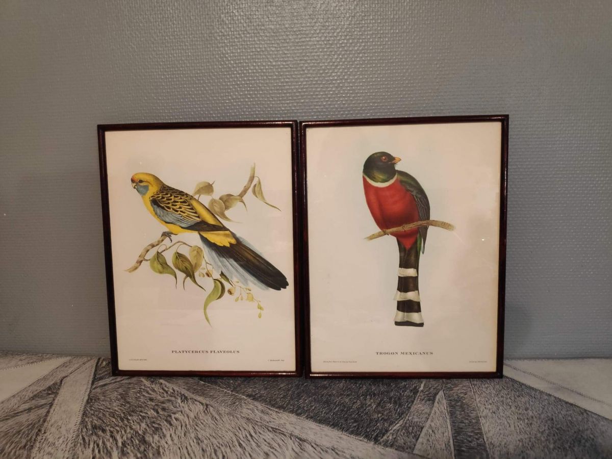 lithographies anciennes d'oiseaux J et E Gould, cadre en bois marron