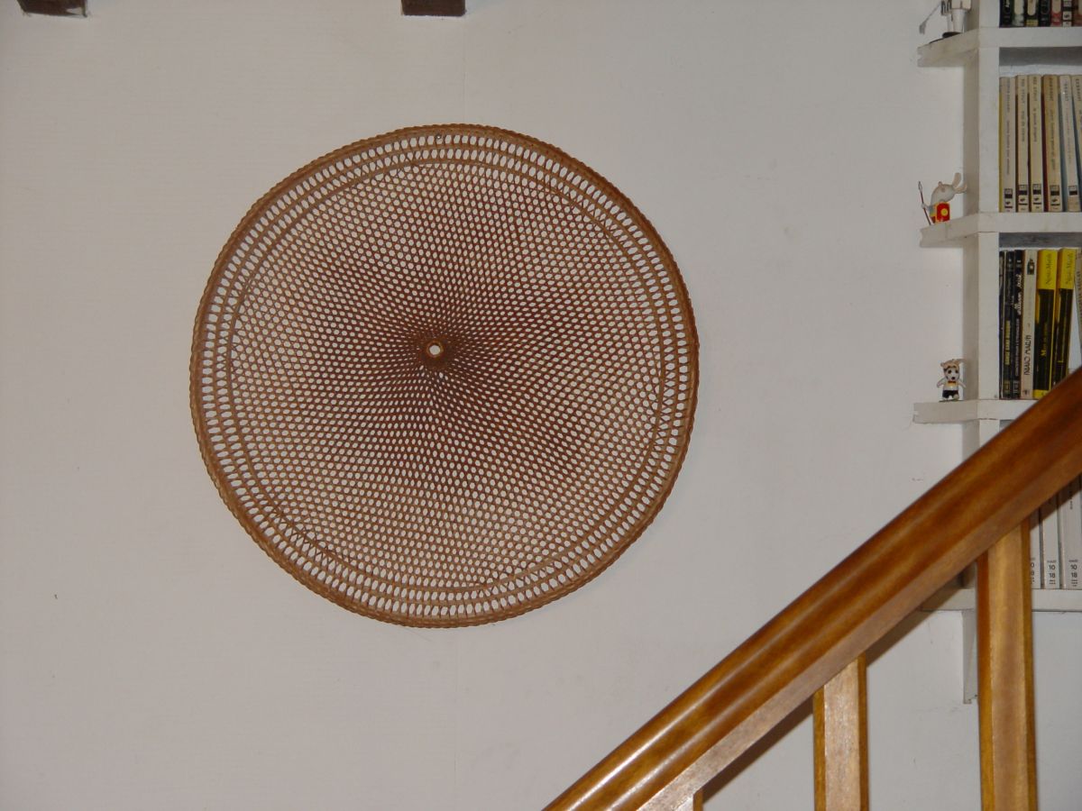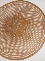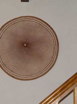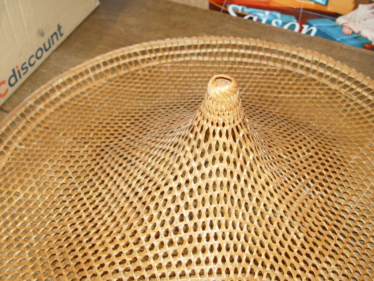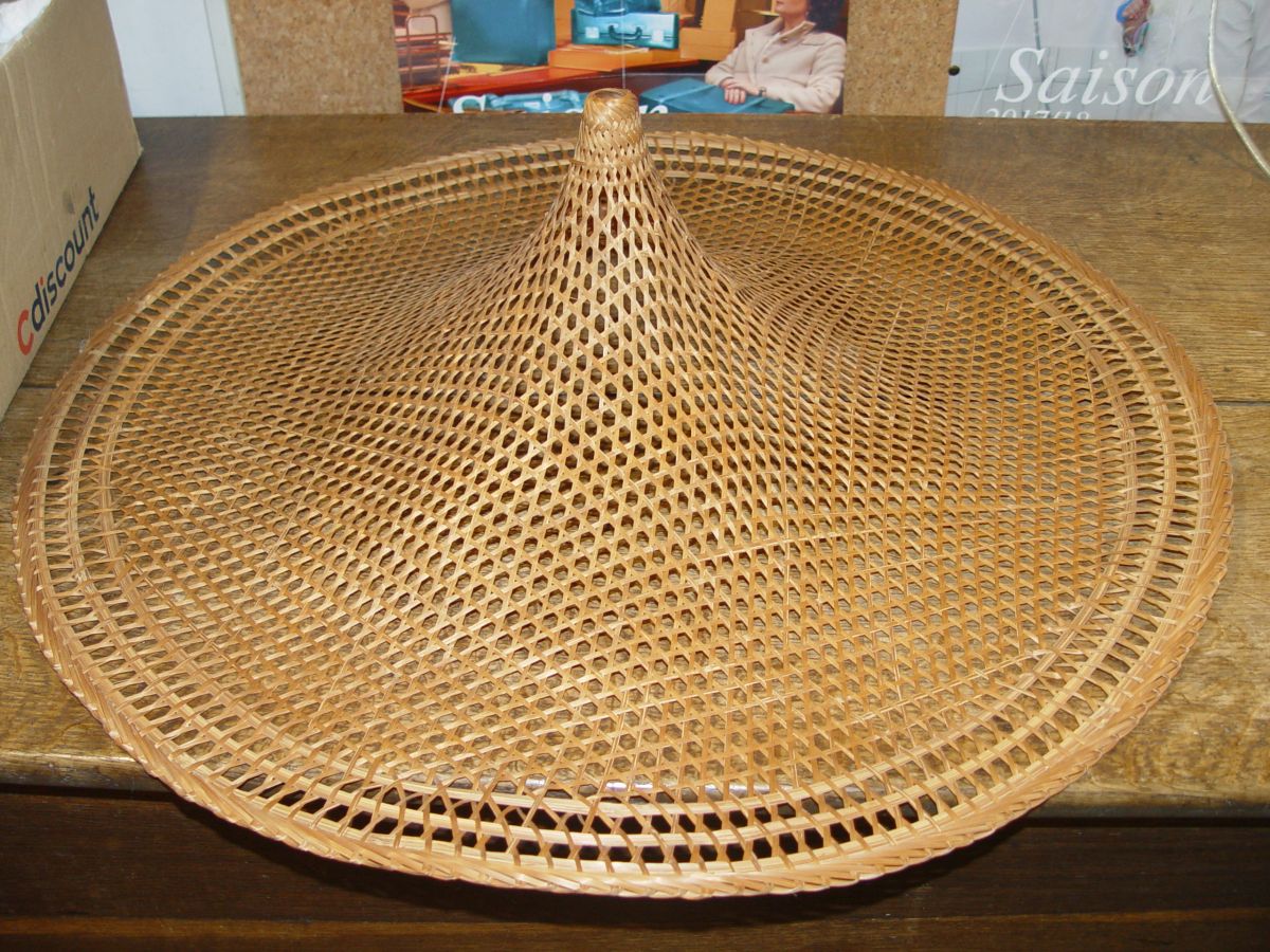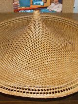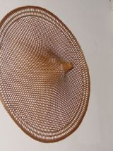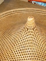 Grand chapeau en osier tressé certainement d'origine asiatique - à accrocher pour un effet tendance garanti.