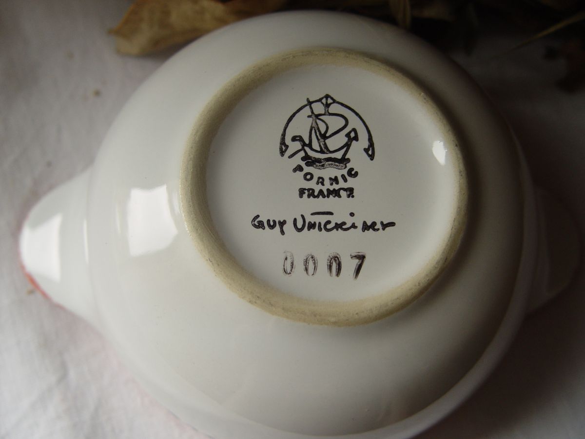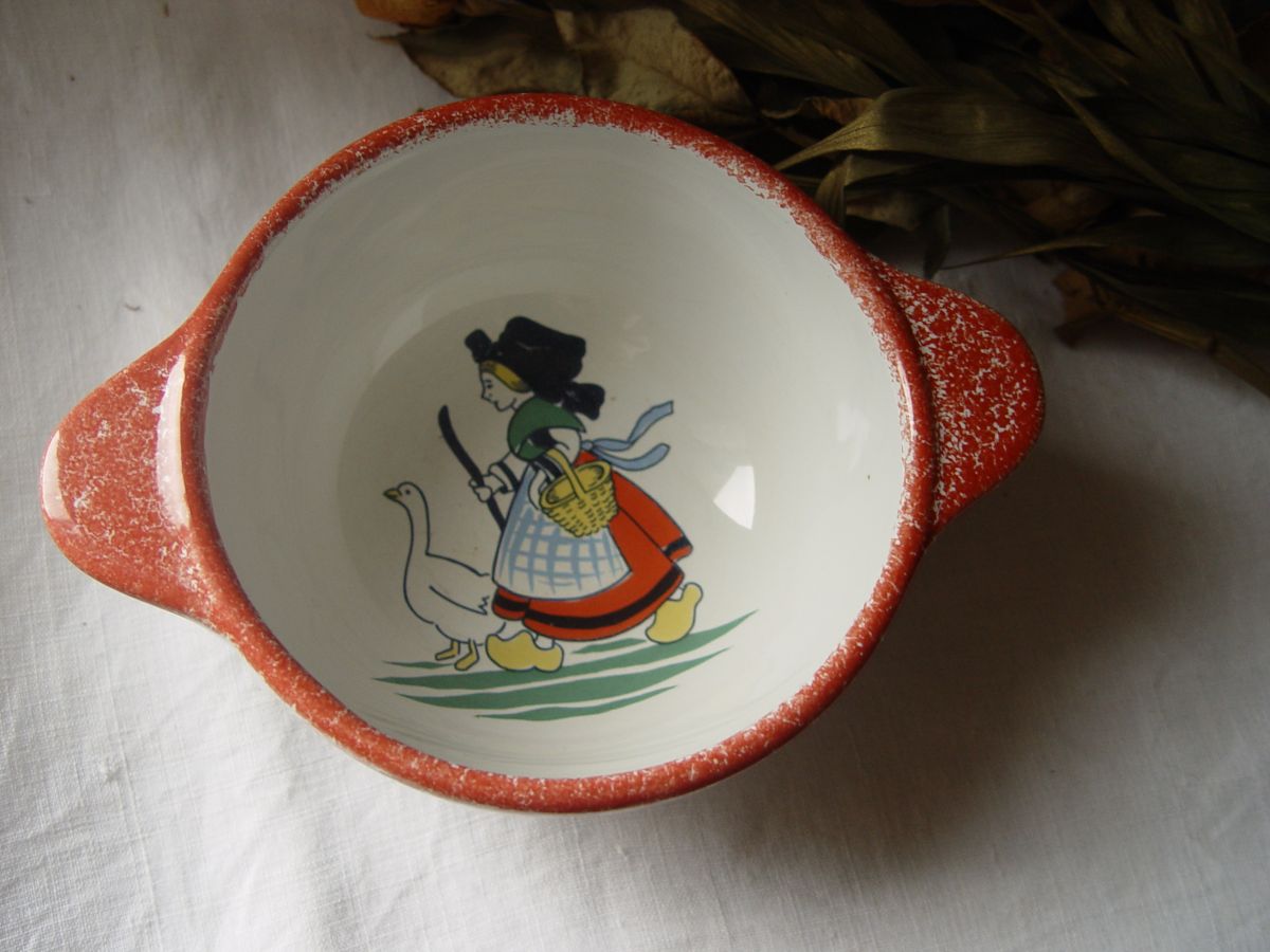 Adorable bol-prénom en faïence de Pornic au décor de bergère aux oies.
