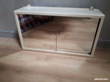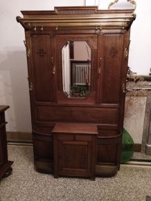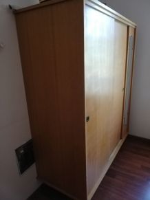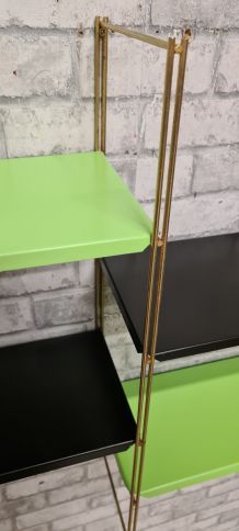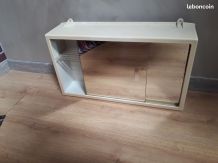 Armoire à clapet DIY noir en métal avec une tablette de chêne sur le dessus. 10 casiers de rangement.