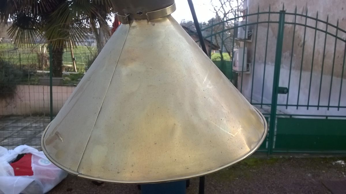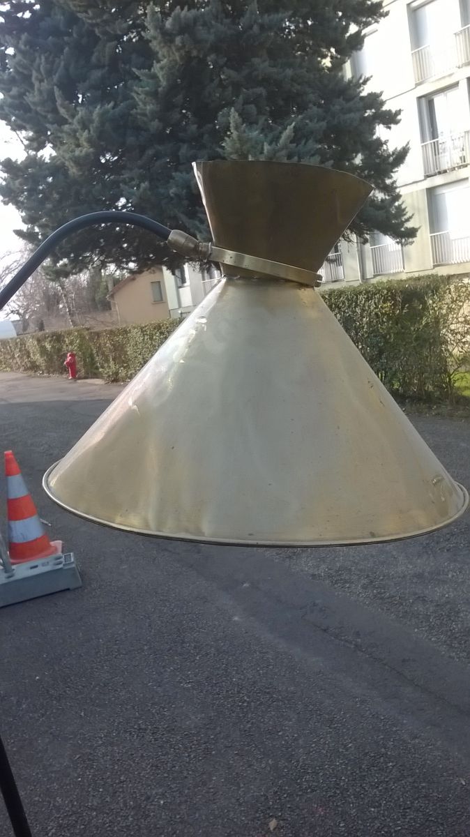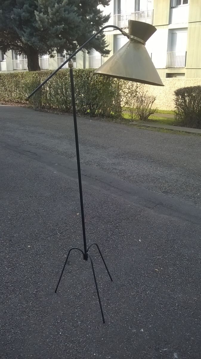 Lampadaire années 50 dans le goût de Lunel. L'abat-jour en laiton est a restauré et a électrifier