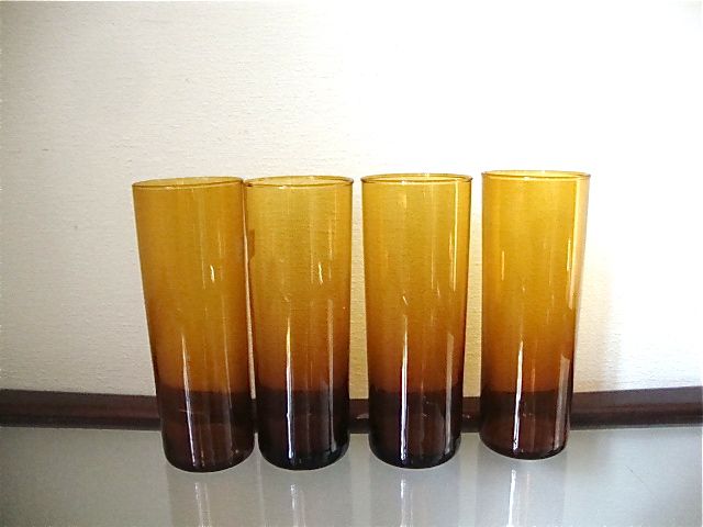 4 verres couleur marron ambré années 70