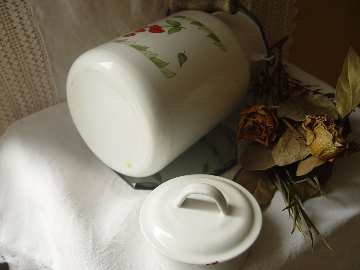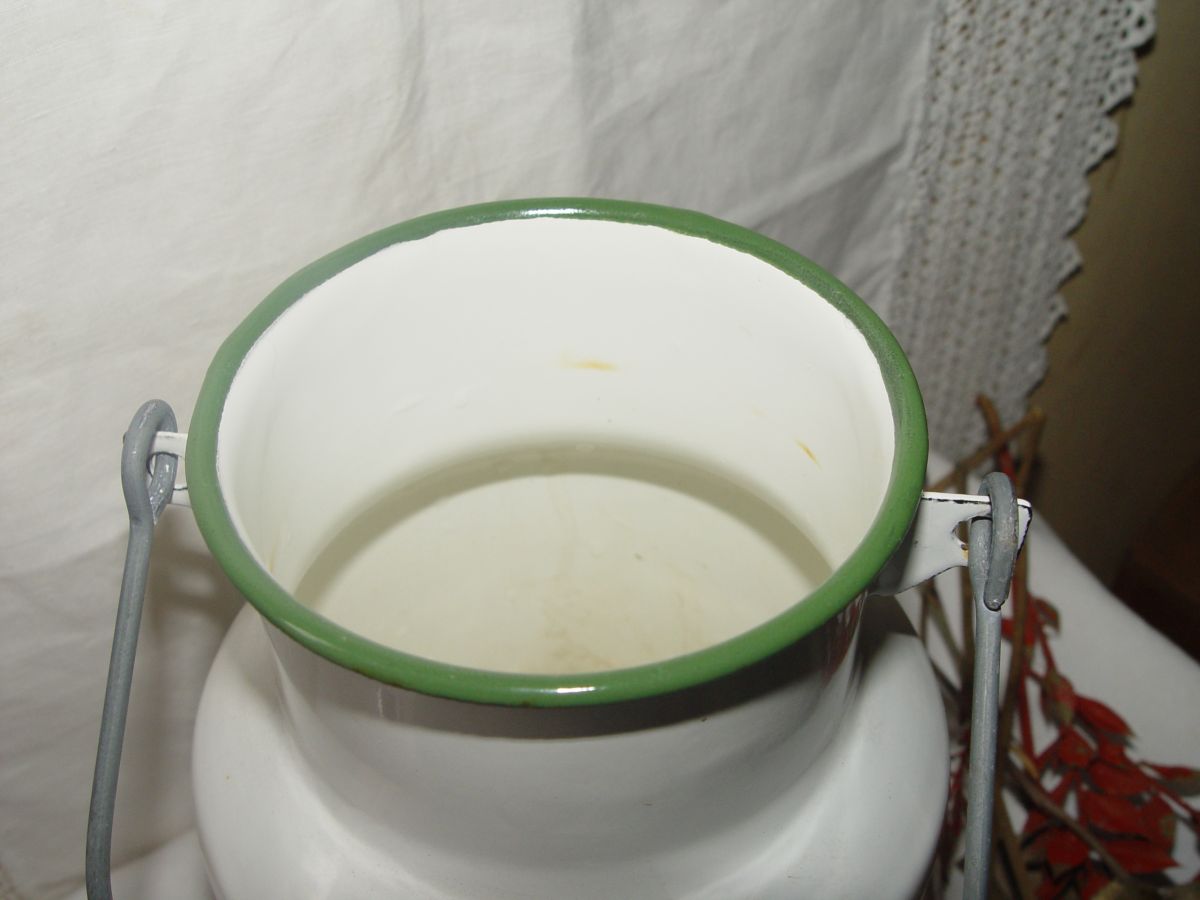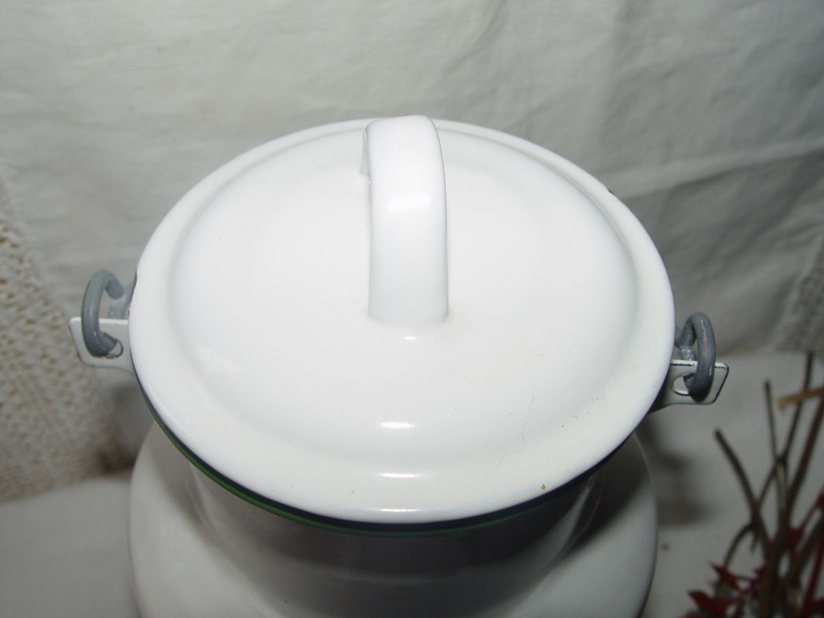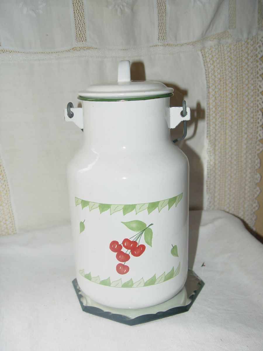 Voici un charmant pot à lait en métal émaillé de contenance 1.5 litre.