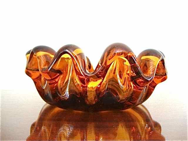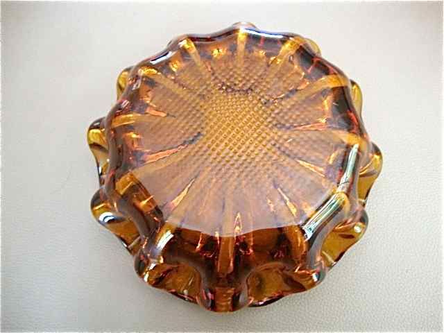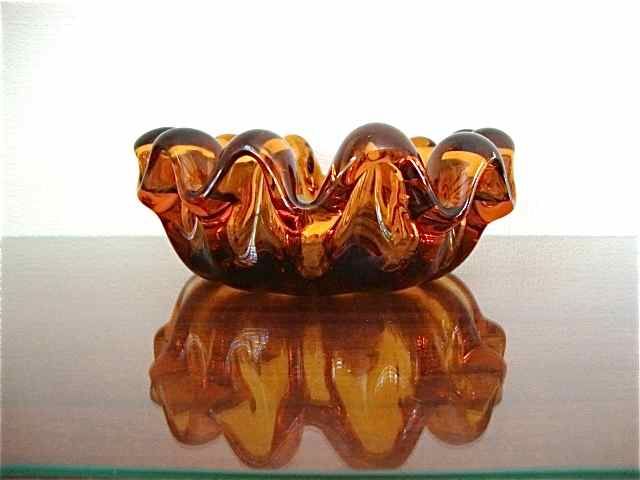 Imposante coupe à fruits ou objet décoratif d’une belle et profonde couleur ambre, remarquable par ses dimensions et par son poids.