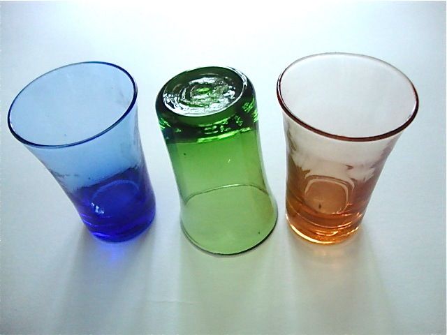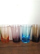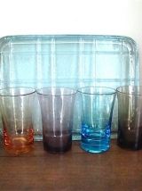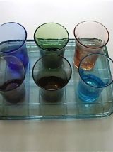 Plateau et six verres colorés