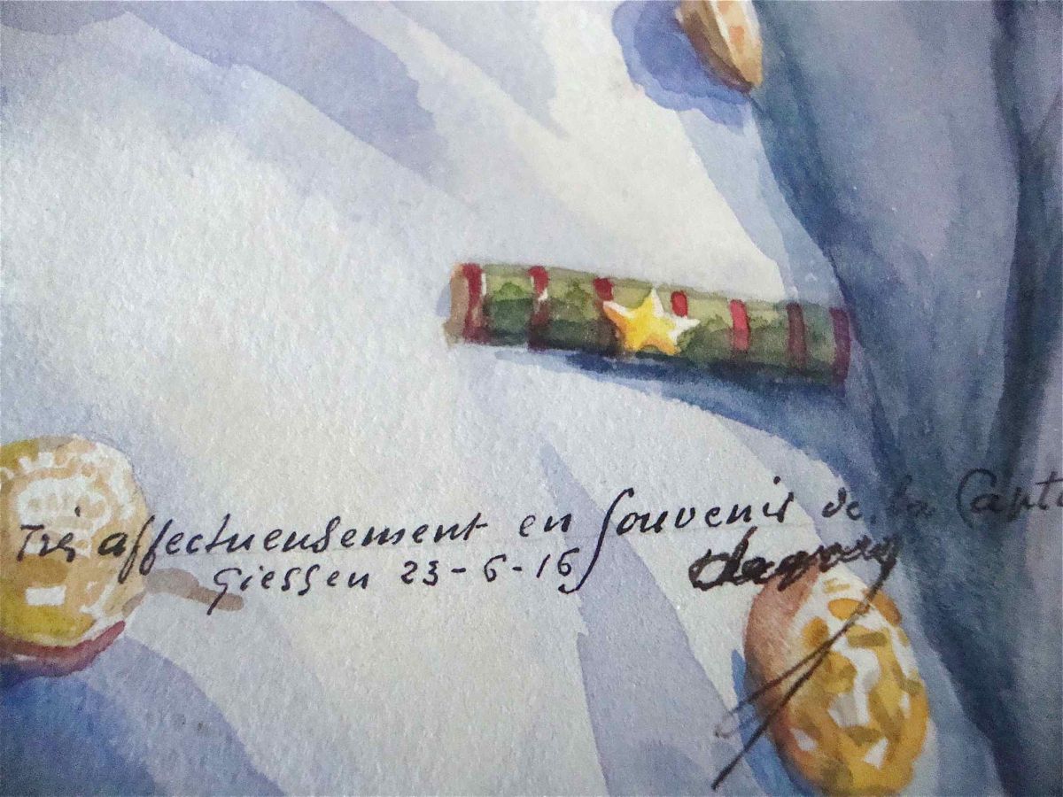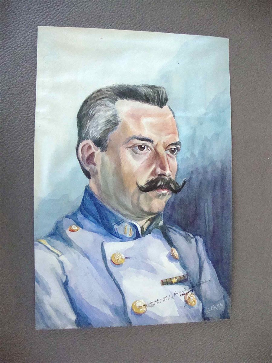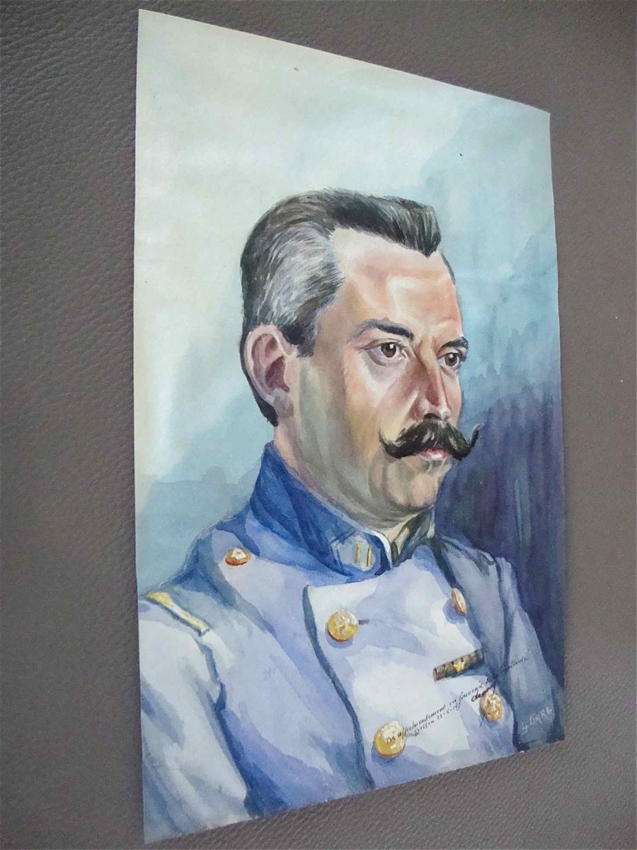 Beau portrait d’un officier de la guerre de 14-18, signé et dédicacé « Très affectueusement en souvenir de la Captivité Giessen 23-6-16 ».