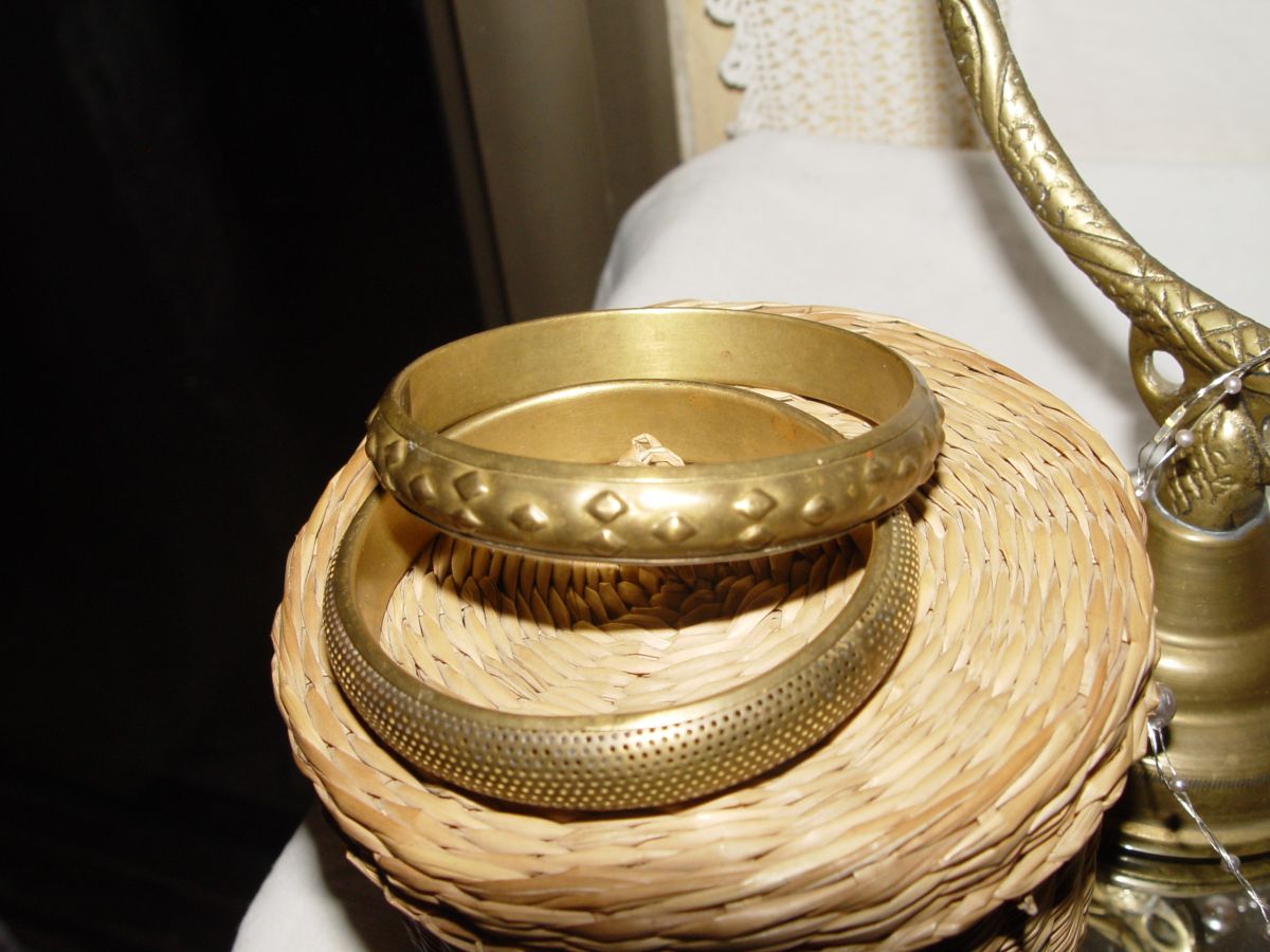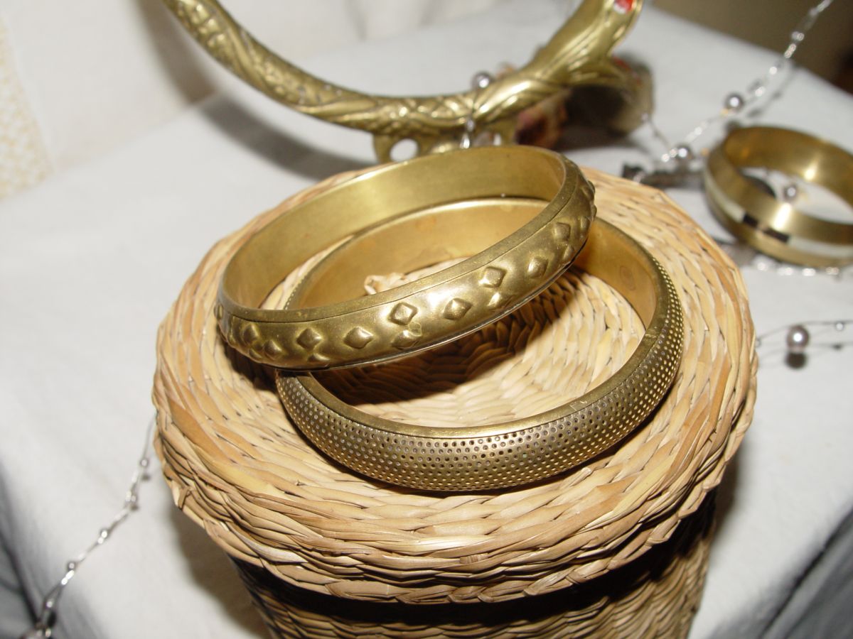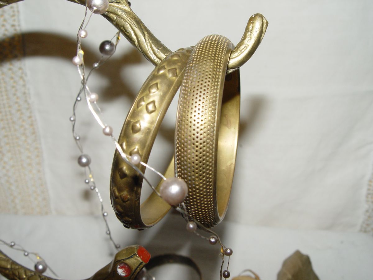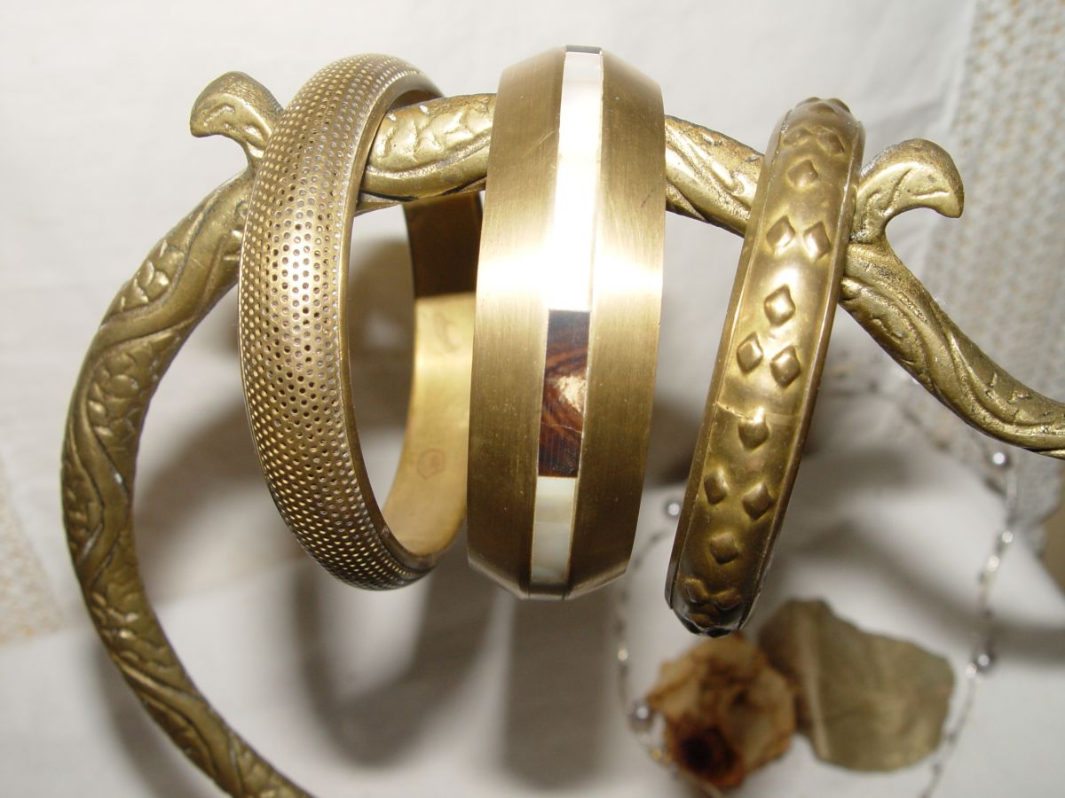 Voici 2 bracelets ethniques en laiton faits pour aller ensemble ! L'un présente des sortes de points en reliefs, l'autre des petits trous.