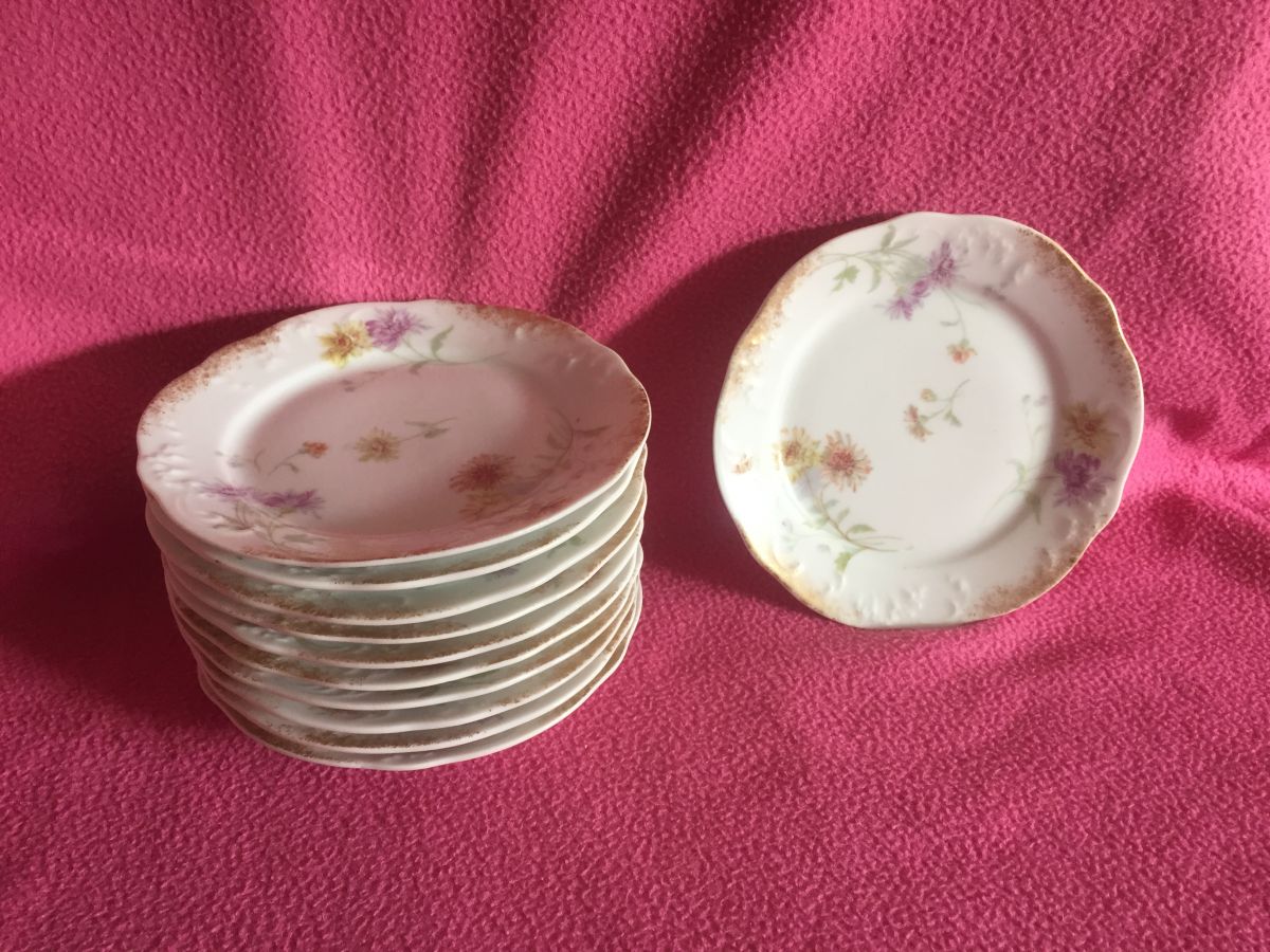 11 assiettesà dessert en porcelaine signées AH&Cie Vierzon.