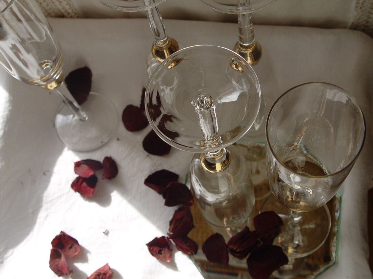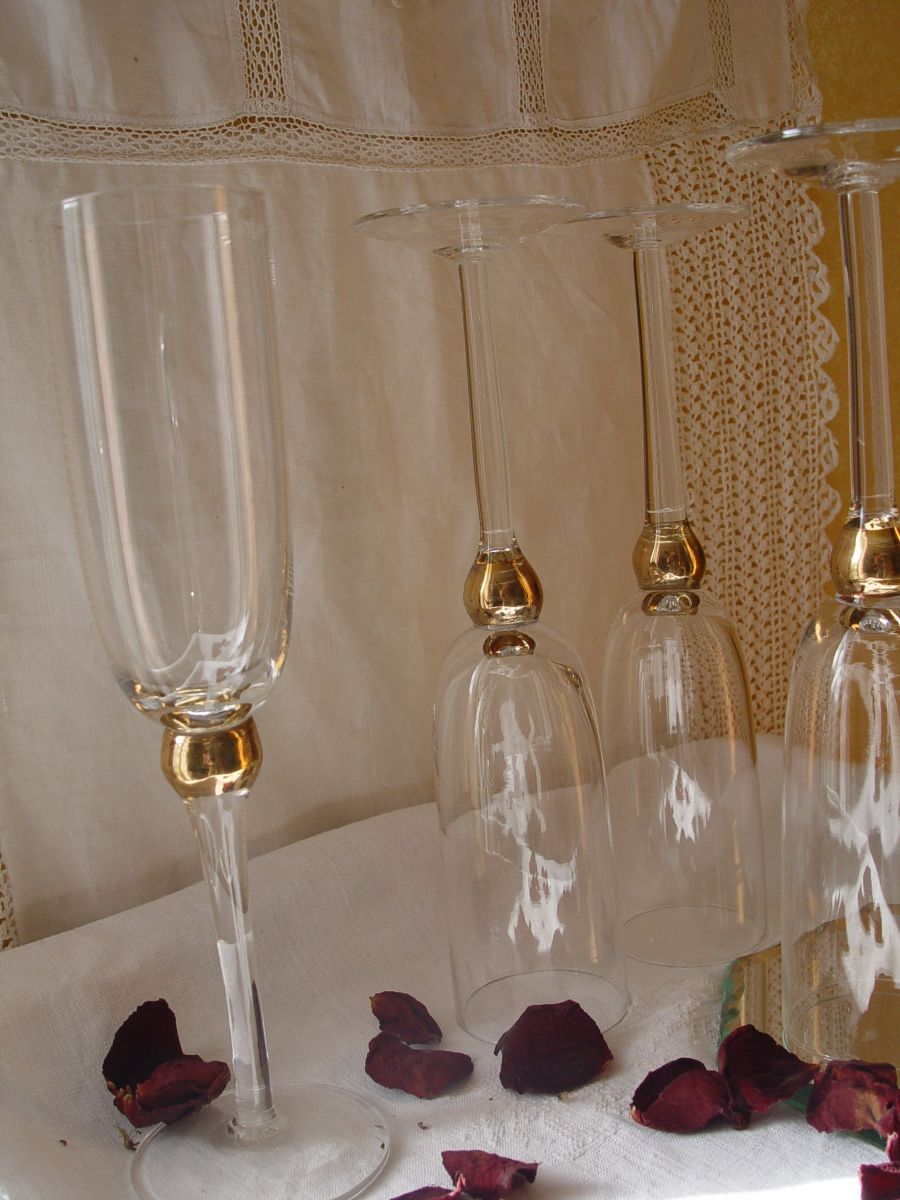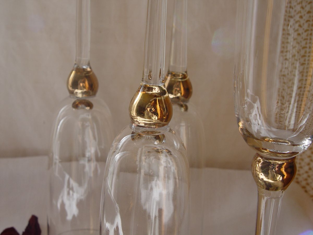 Lot de 5 flutes à champagne verre et or