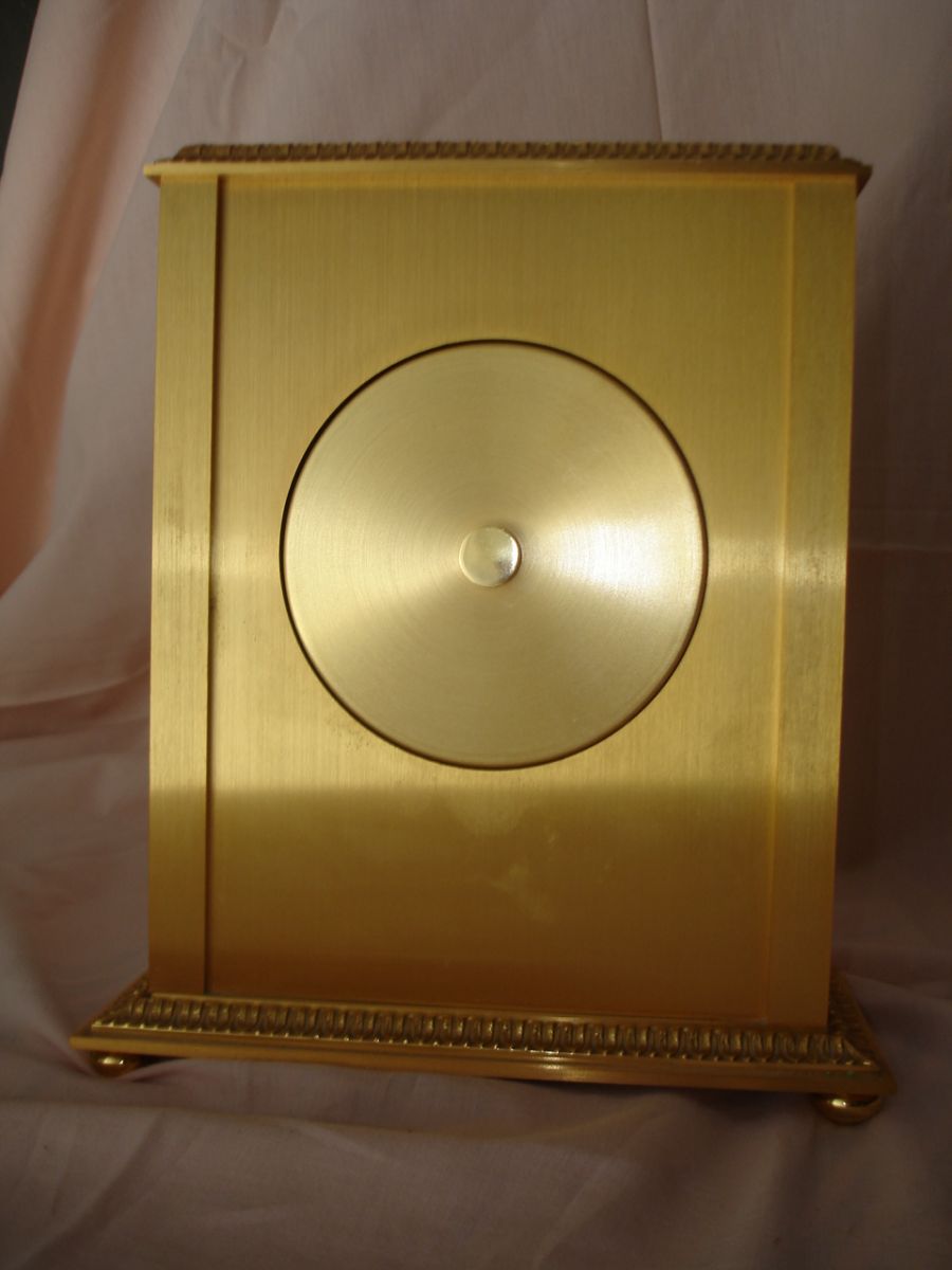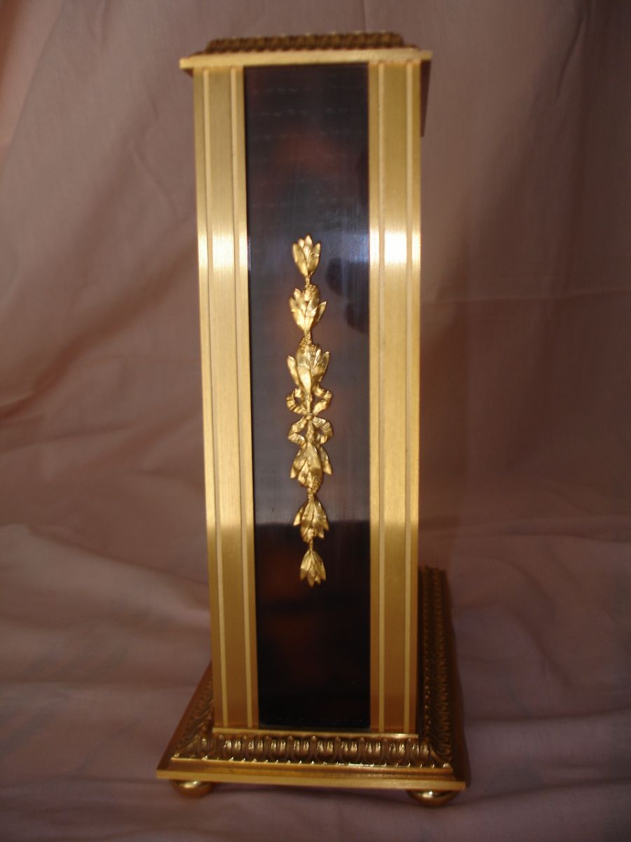 Pendule de prestige de marque Hour Lavigne en bronze doré, objet numéroté en très bon état, le mécanisme à pile fonctionne parfaitement.