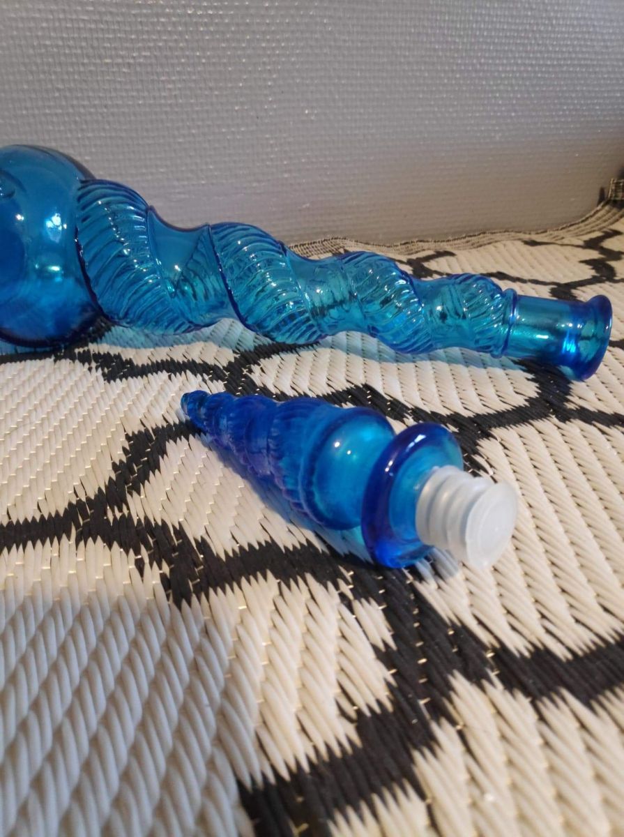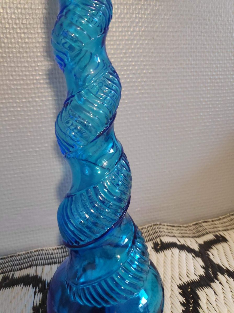 carafe bleue torsadée avec bouchon flamme.