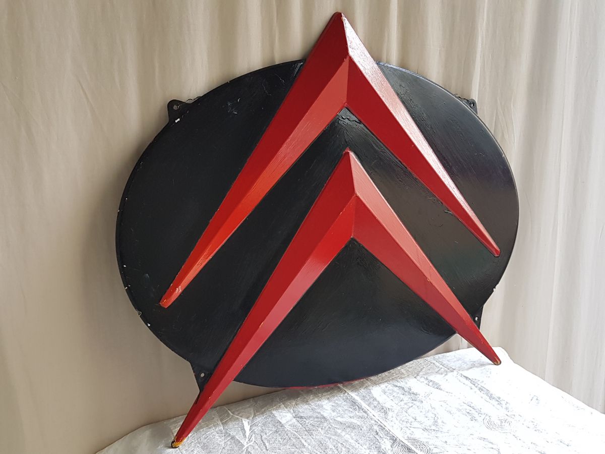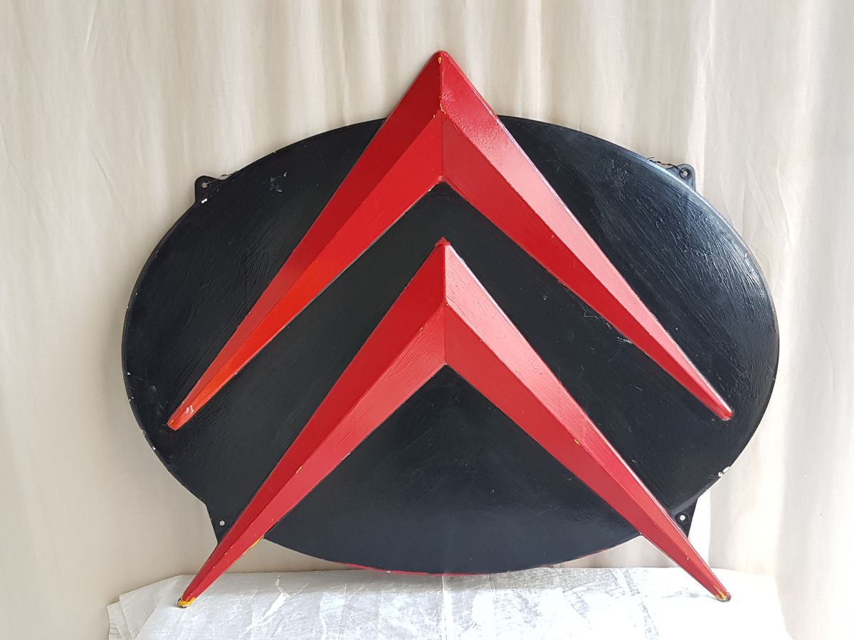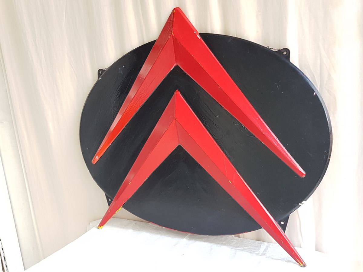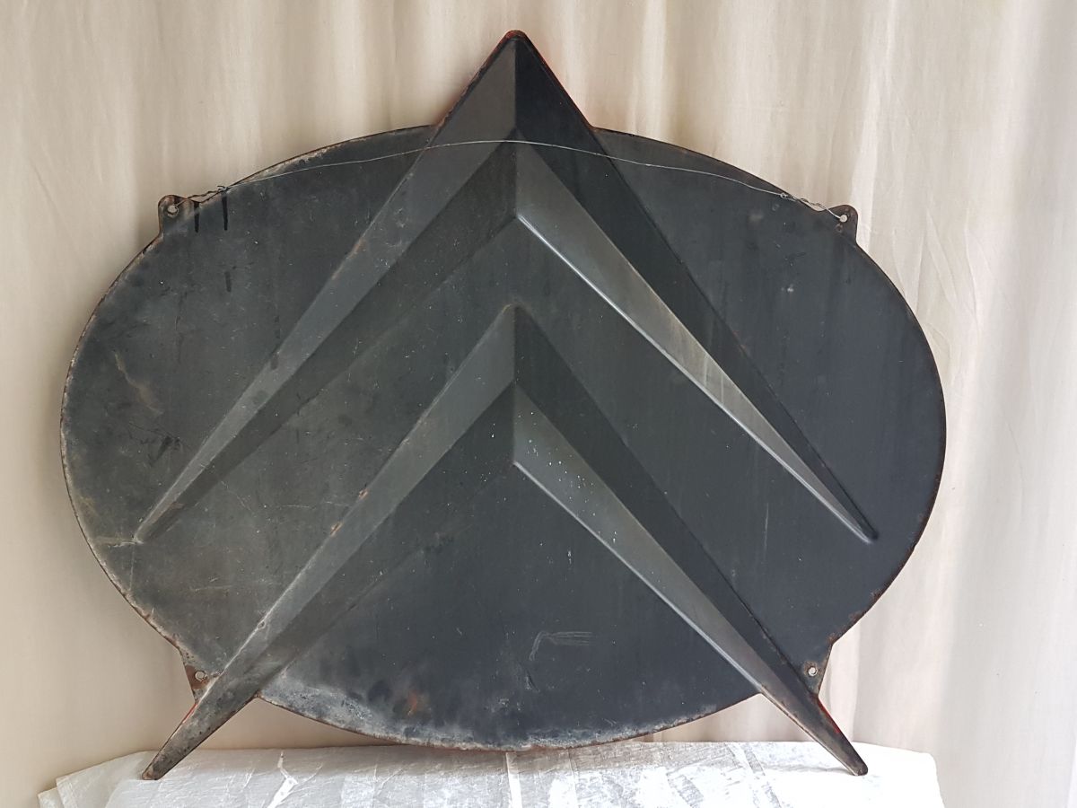 Grande plaque originale en métal, de la marque Citroën, modèle aux chevrons de forme ovale avec ses motifs en reliefs