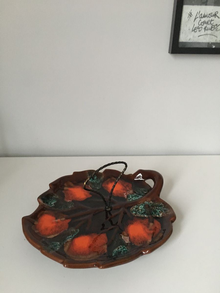 Un plateau à fromage signé Vallauris en céramique de Vallauris, représentant une feuille d'automne
