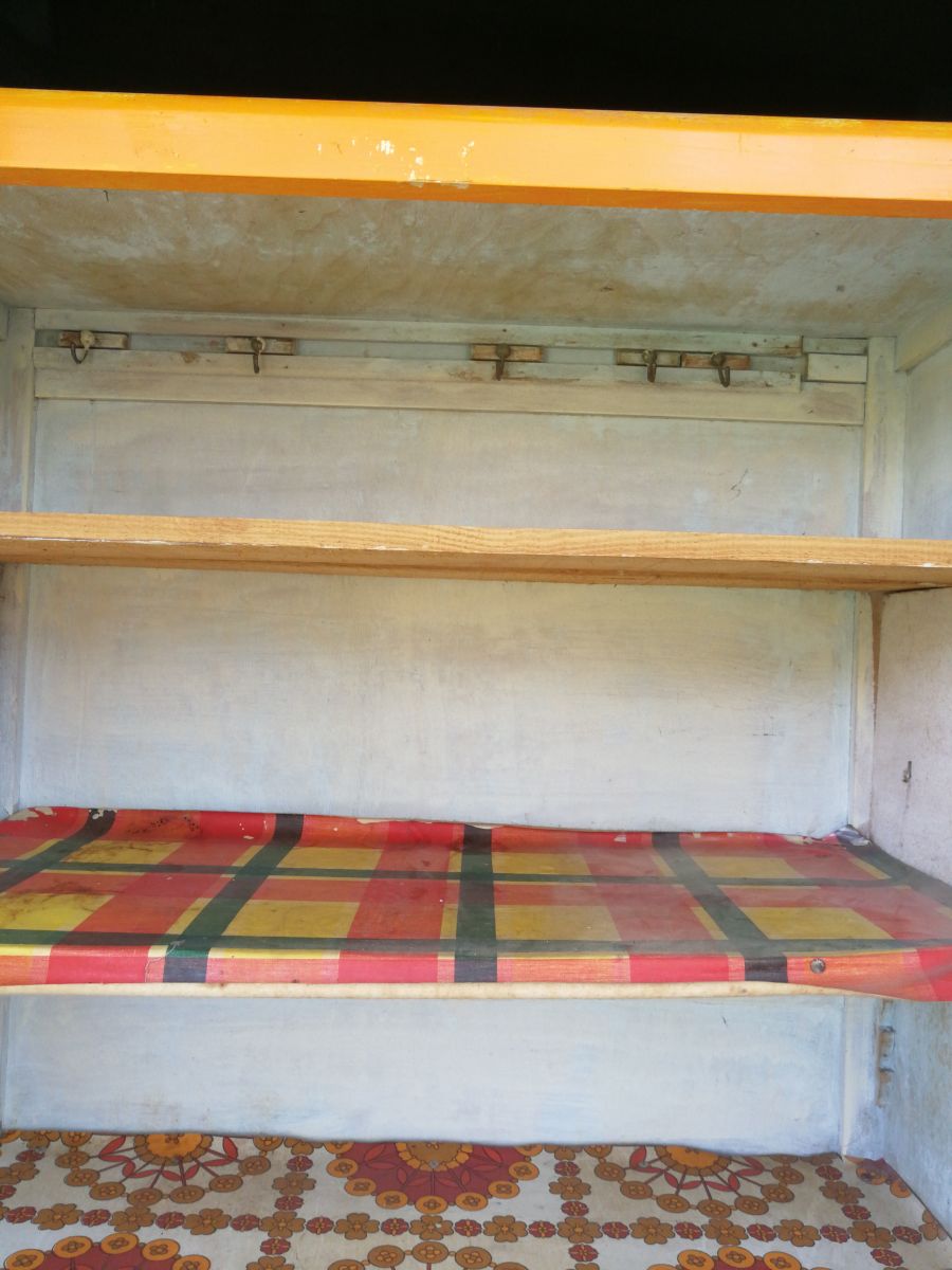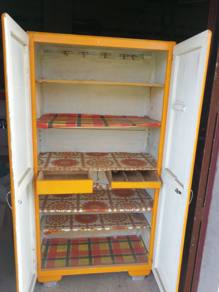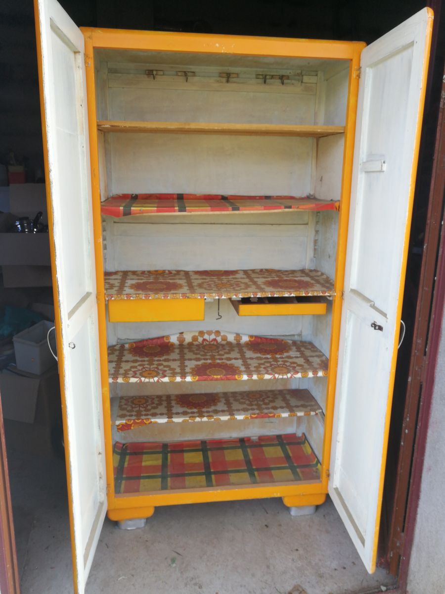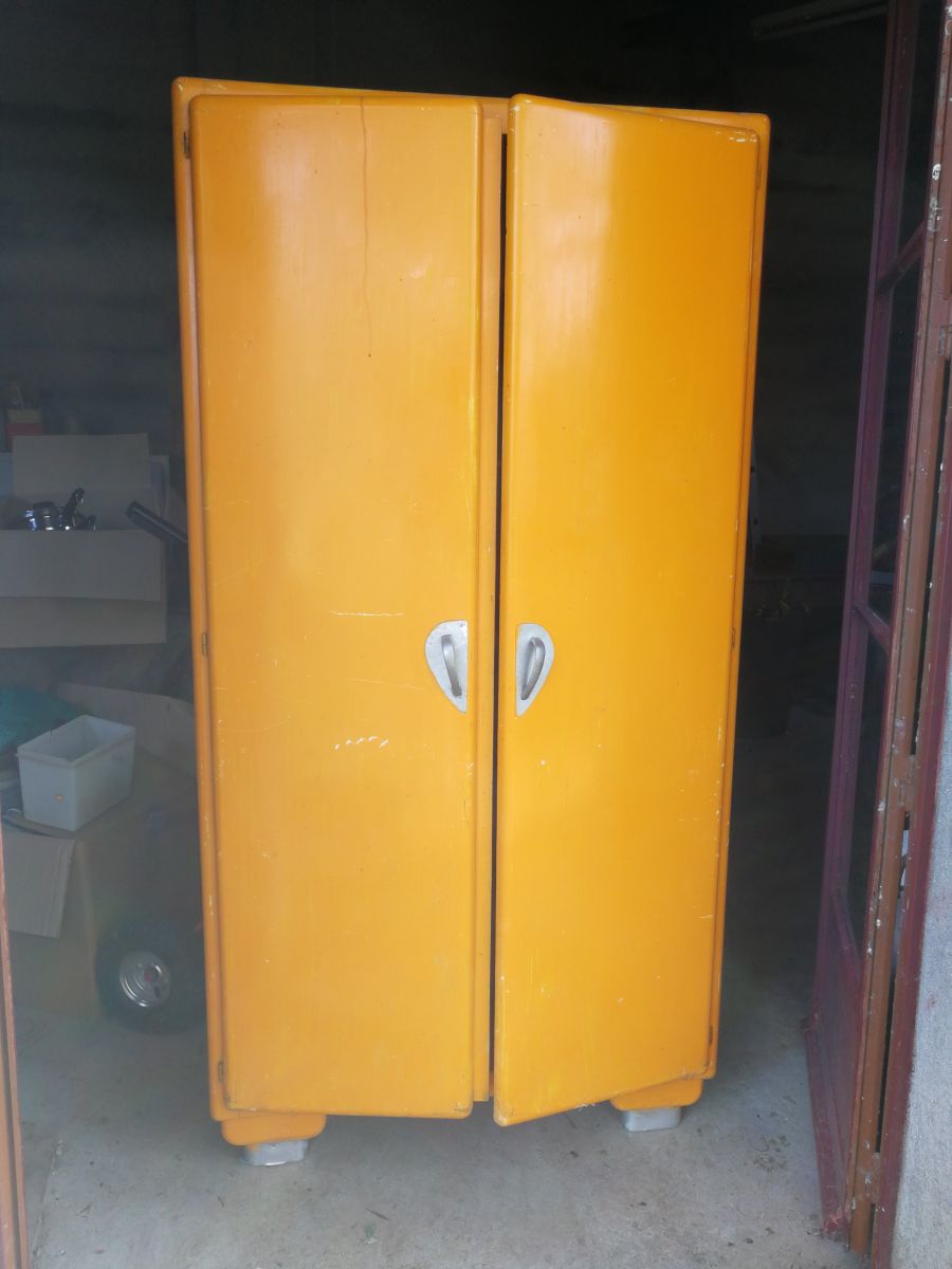 Armoire vintage orange année 70,pour les amoureux des 70 s, poignées en aluminium, dans son jus.