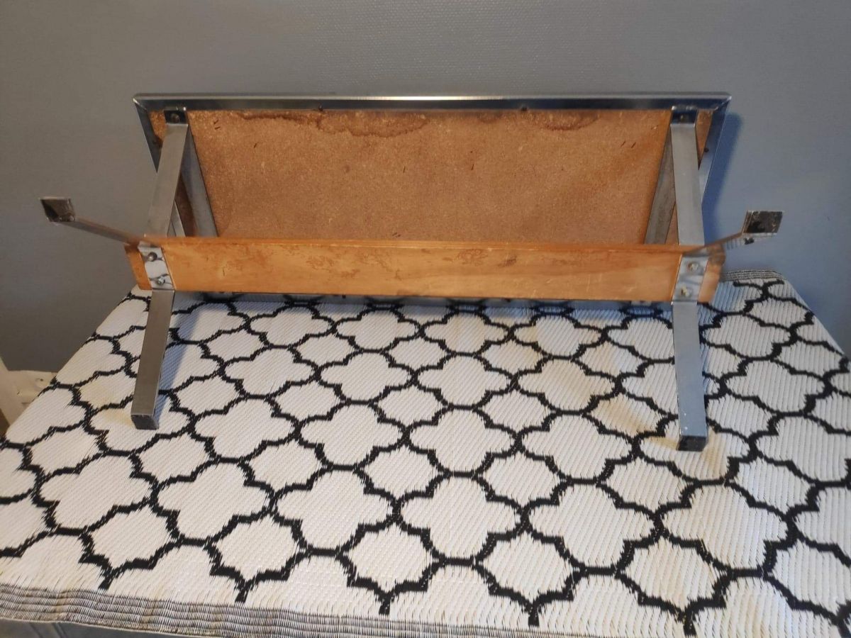 pieds en métal chromé et planche en bois